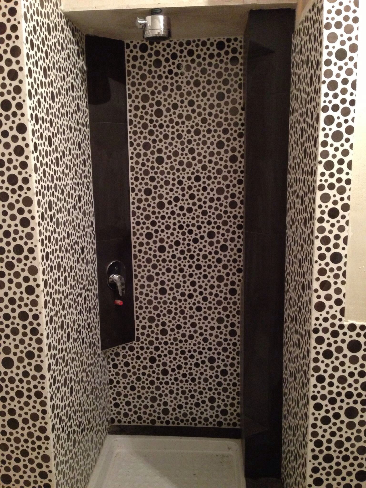 Aquí tenemos varias opciones, podemos alicatar con algún azulejo de estilo mosaico del color del azulejo