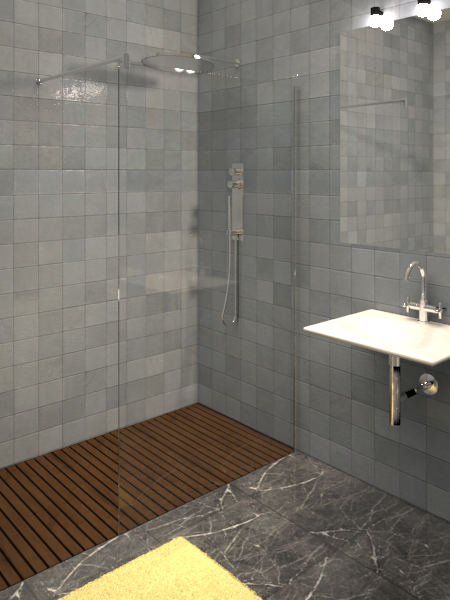 Por último nos quedará cerrar el espacio de ducha con una mampara. Si el plato tiene la longitud suficiente, con una sóla hoja fija en el lado de la grifería será suficiente, sin necesidad de puertas correderas, abatibles, etc…