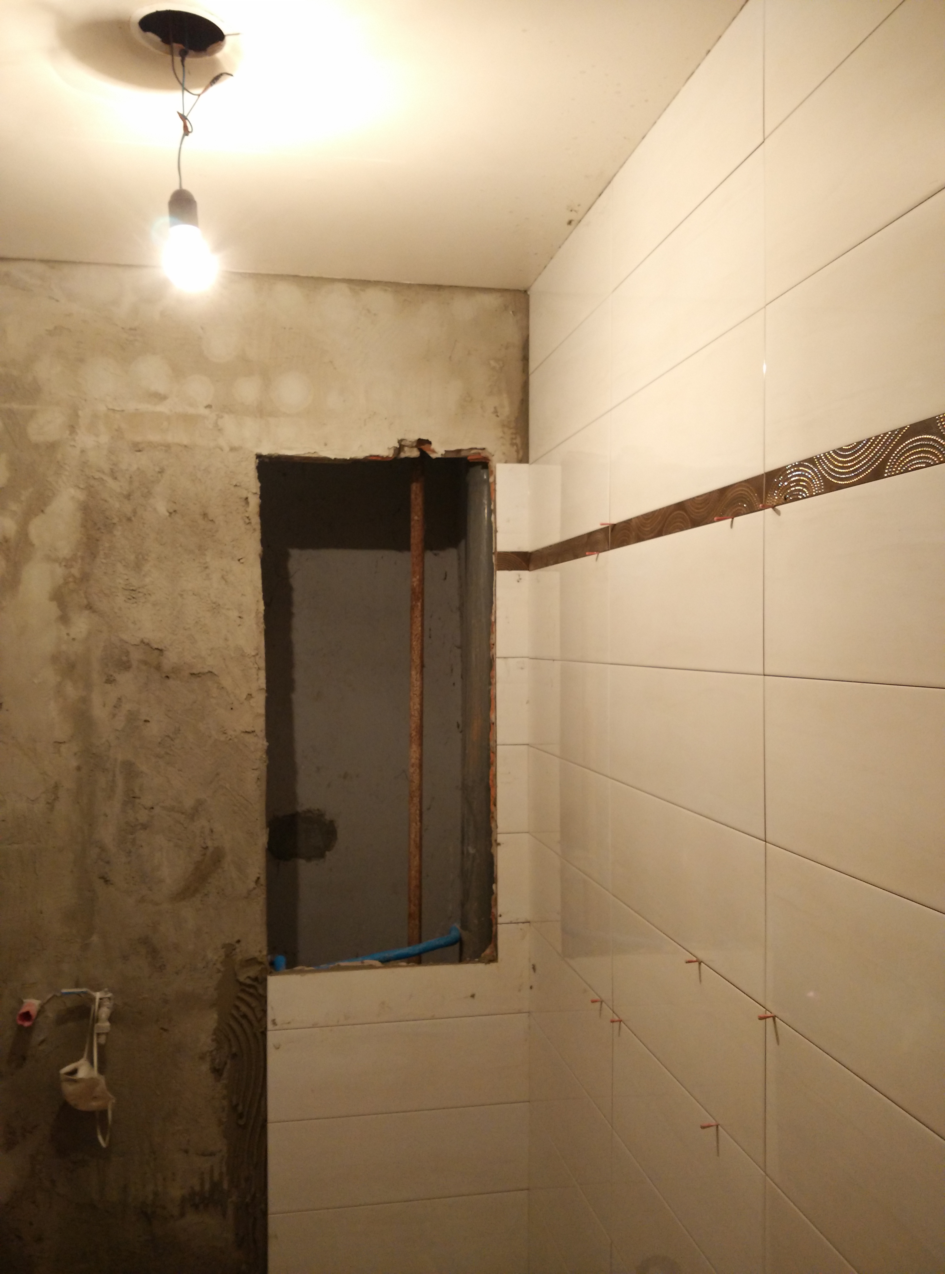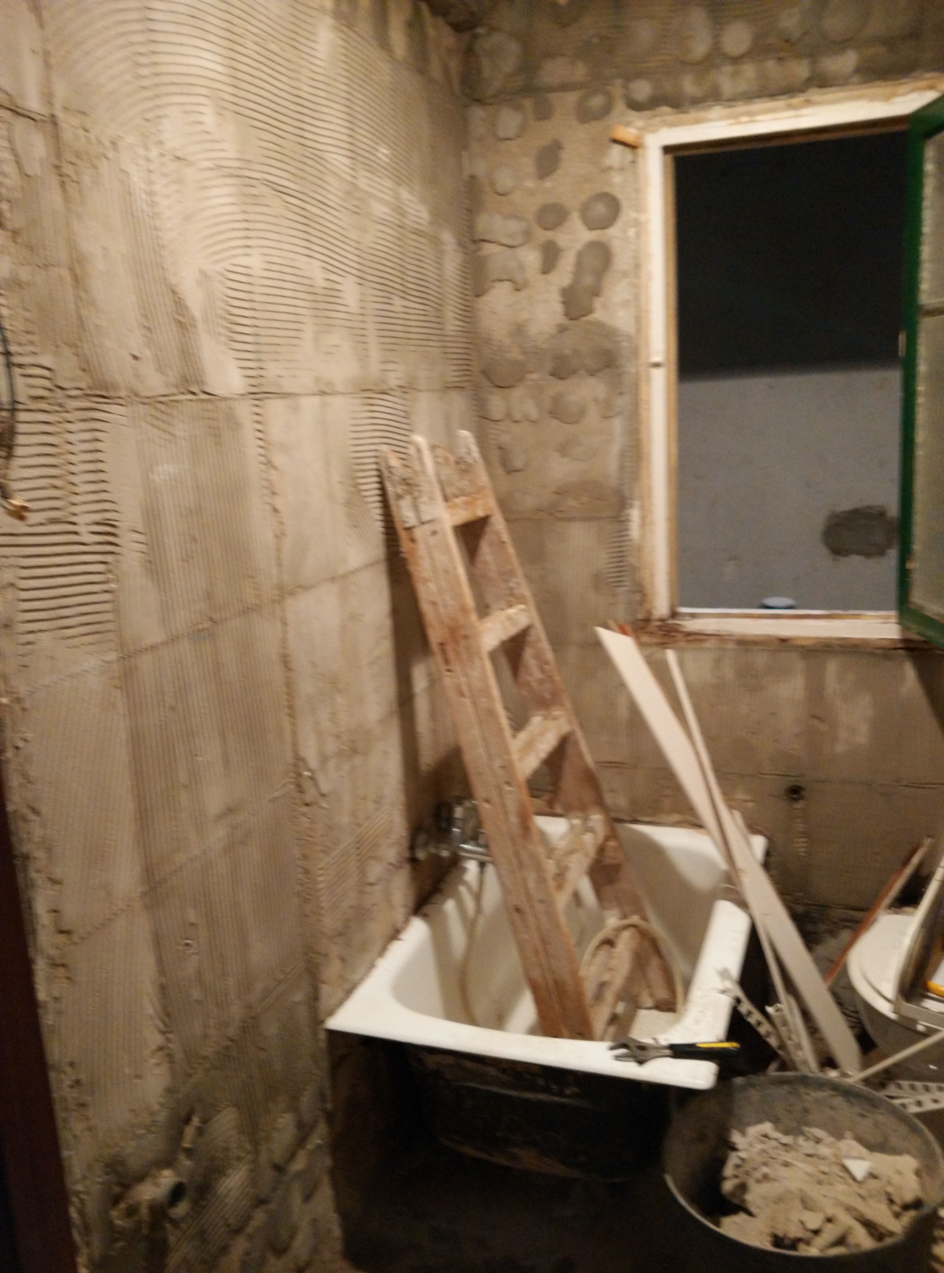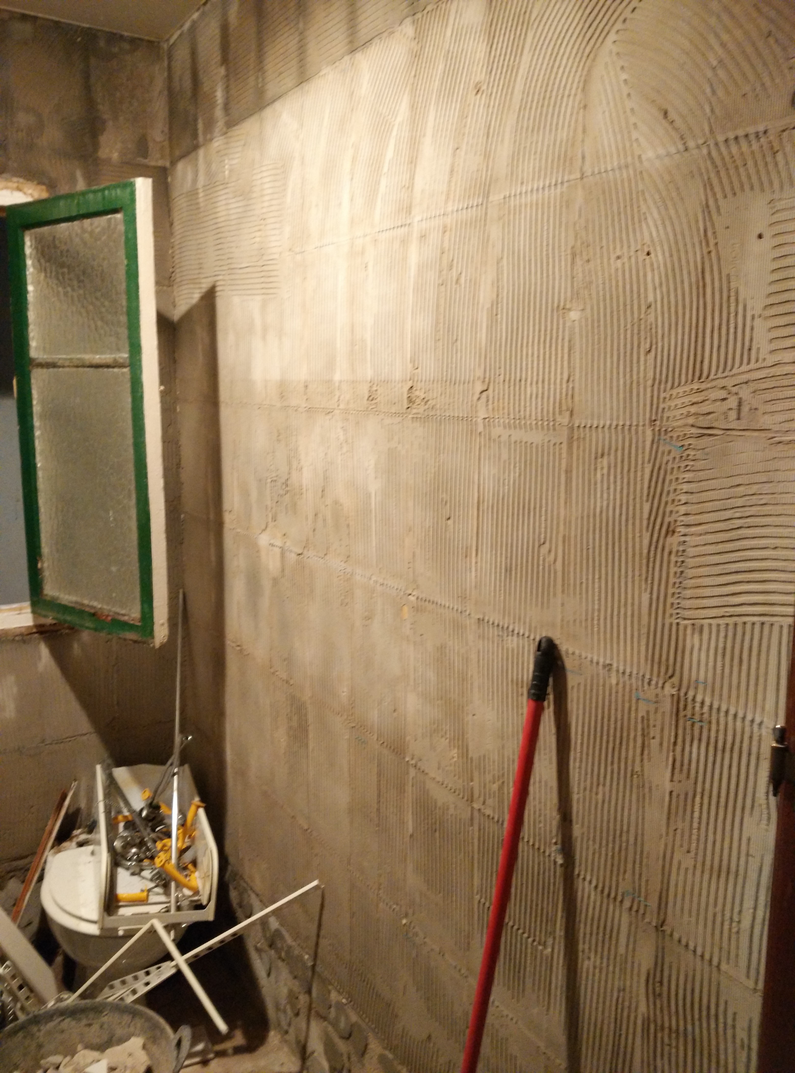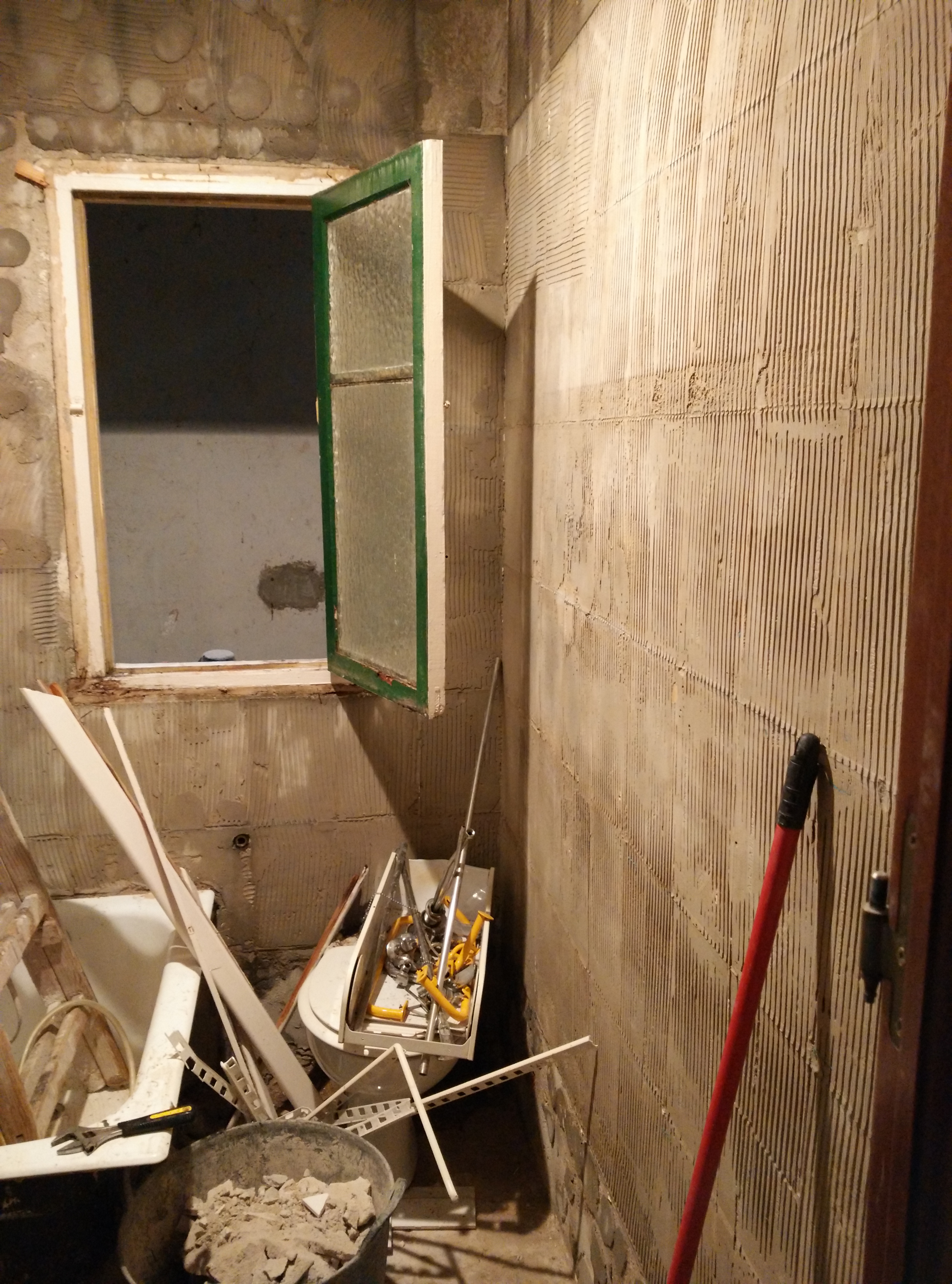 Una vez picado todo el azulejo y baldosa de suelo, y modificada la ventana, hemos cambiado toda la instalación de fontanería y electricidad, y después raseado todas las paredes e instalado el plato de 70×100 de pizarra blanco.