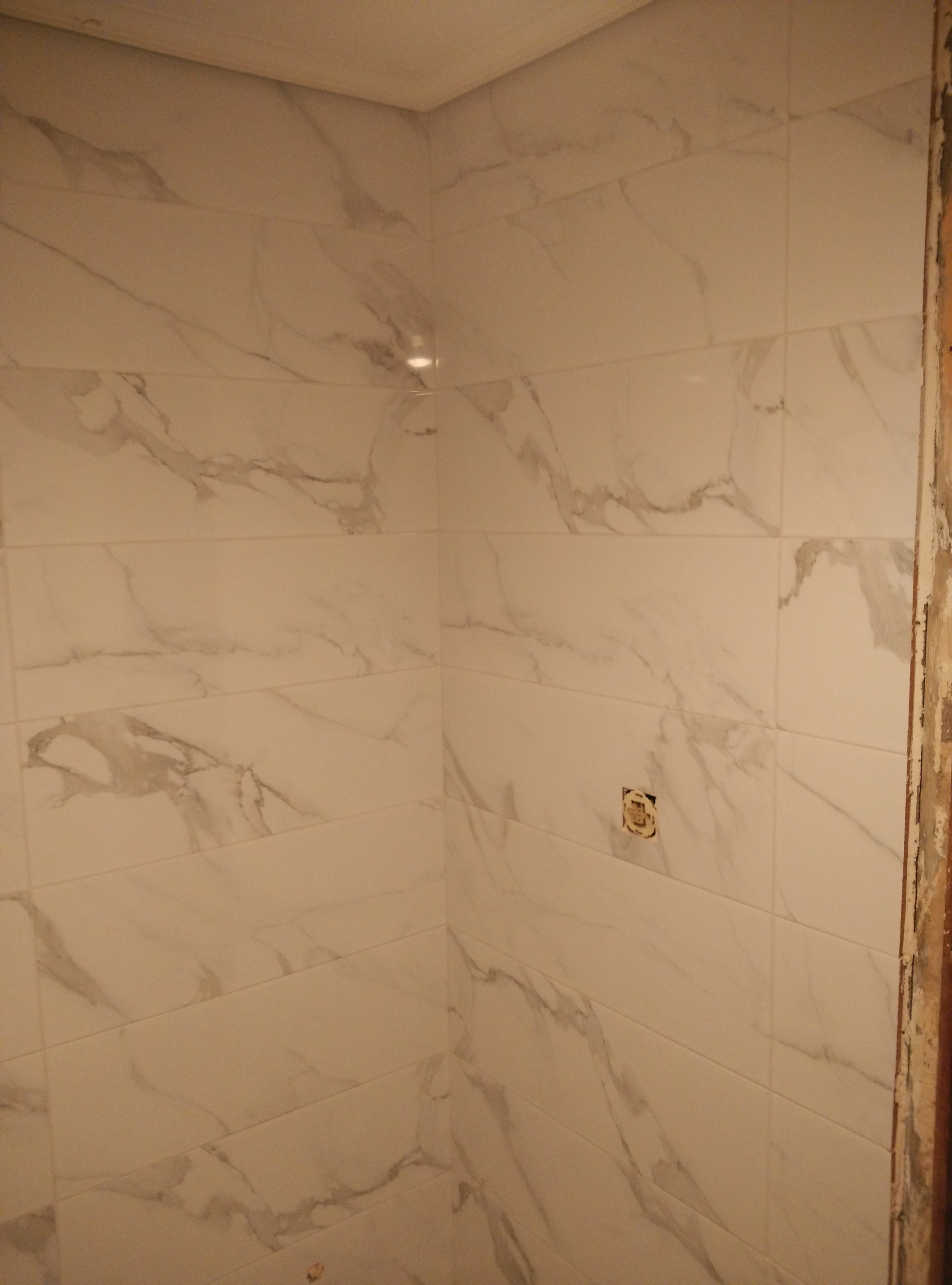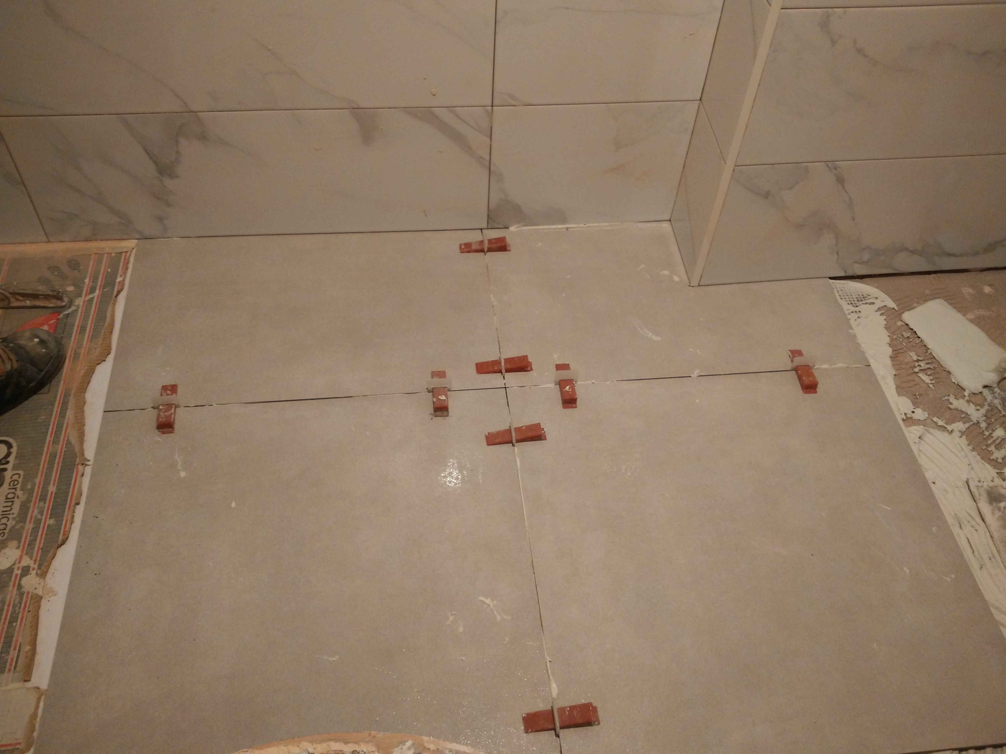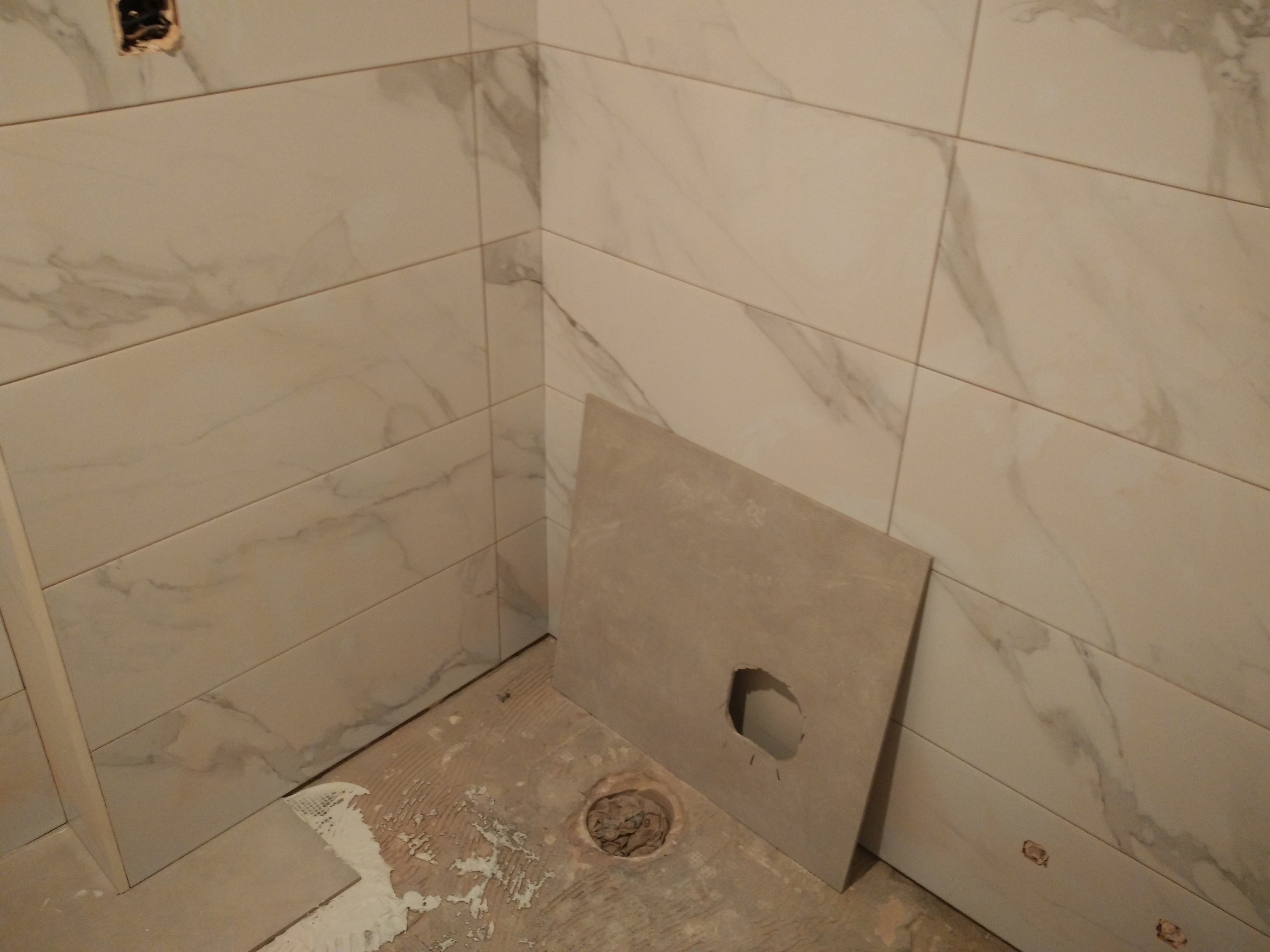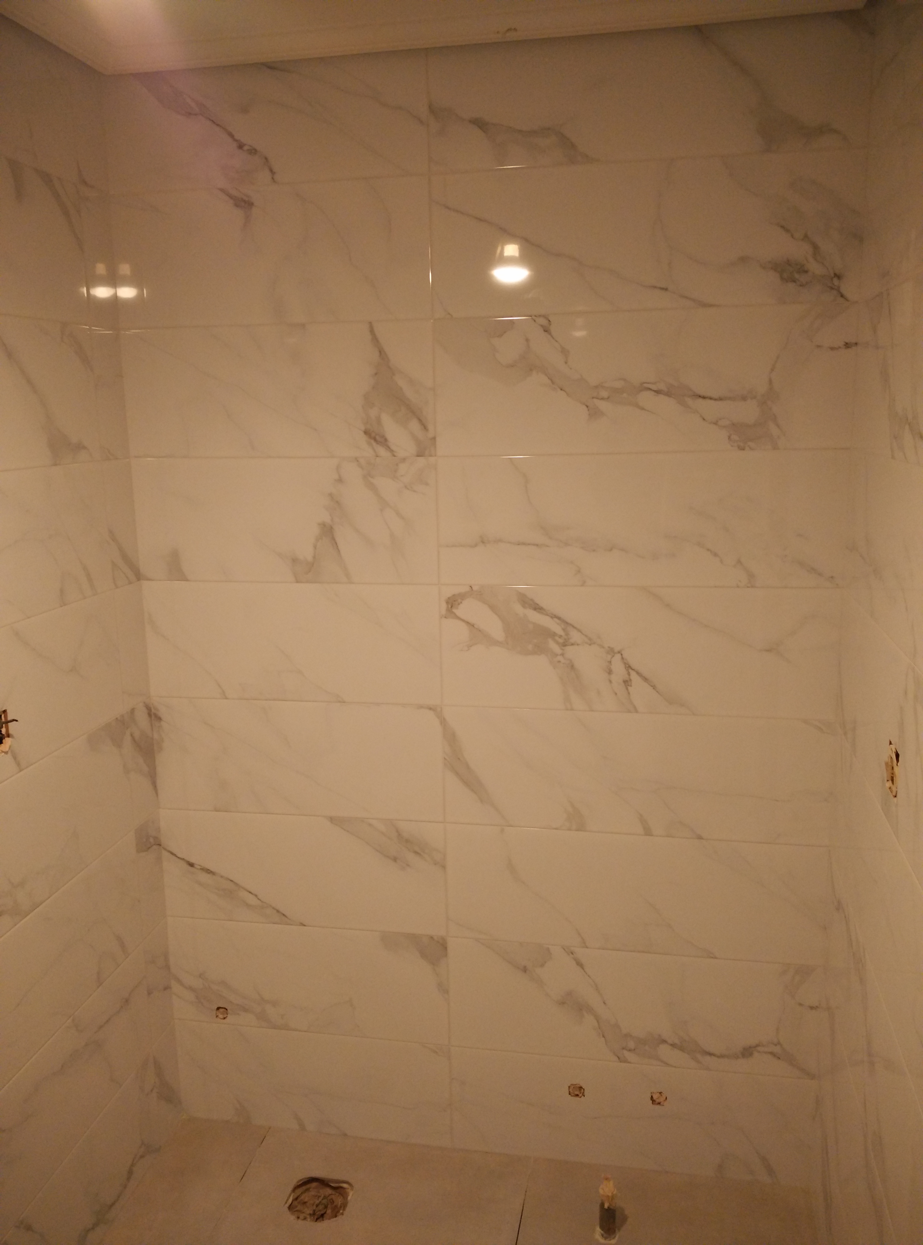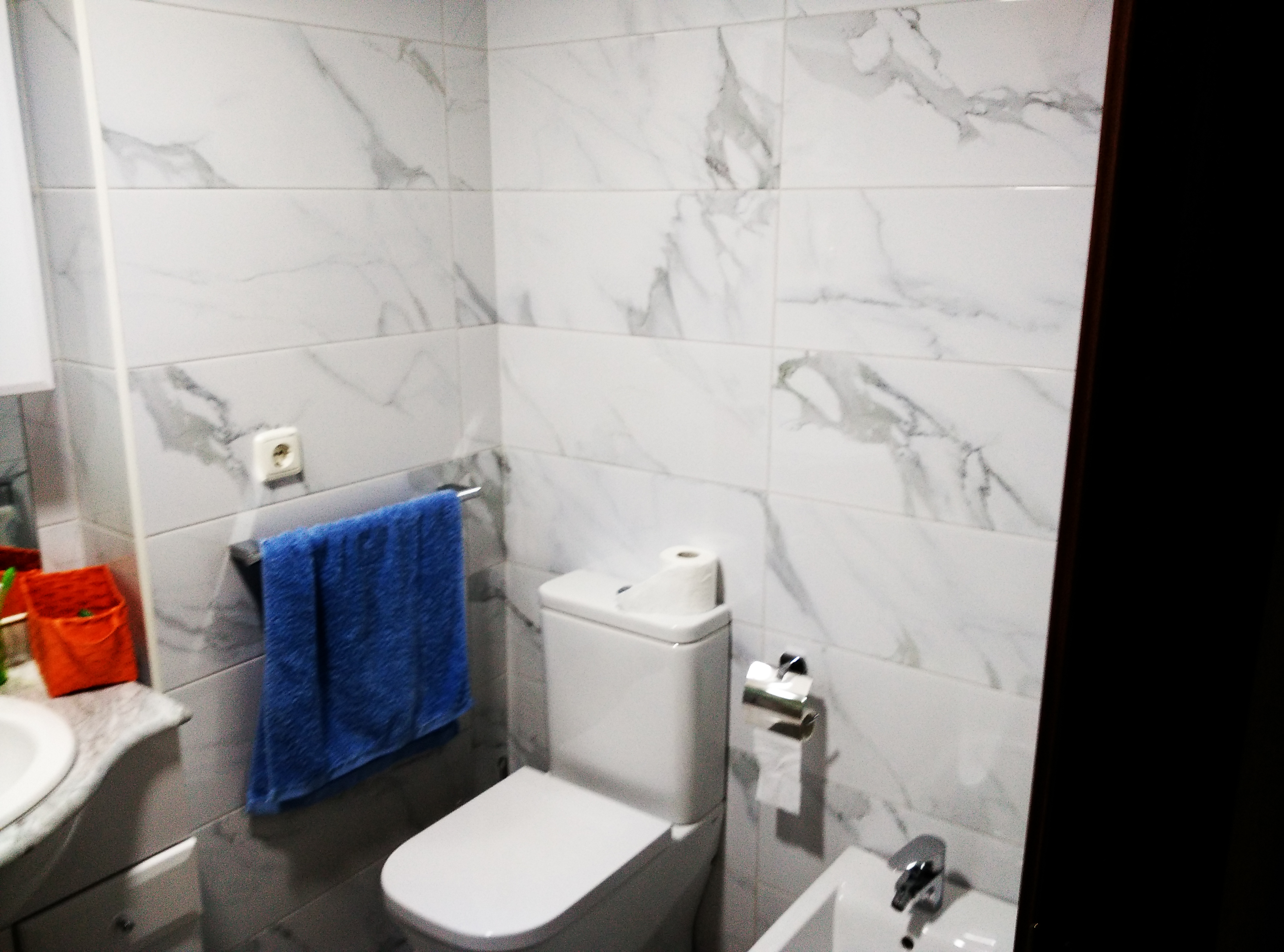 Después hay que revestir las paredes con azulejo marmoleado de 25x75cm. y el suelo con baldosa porcelánica de 50x50cm.