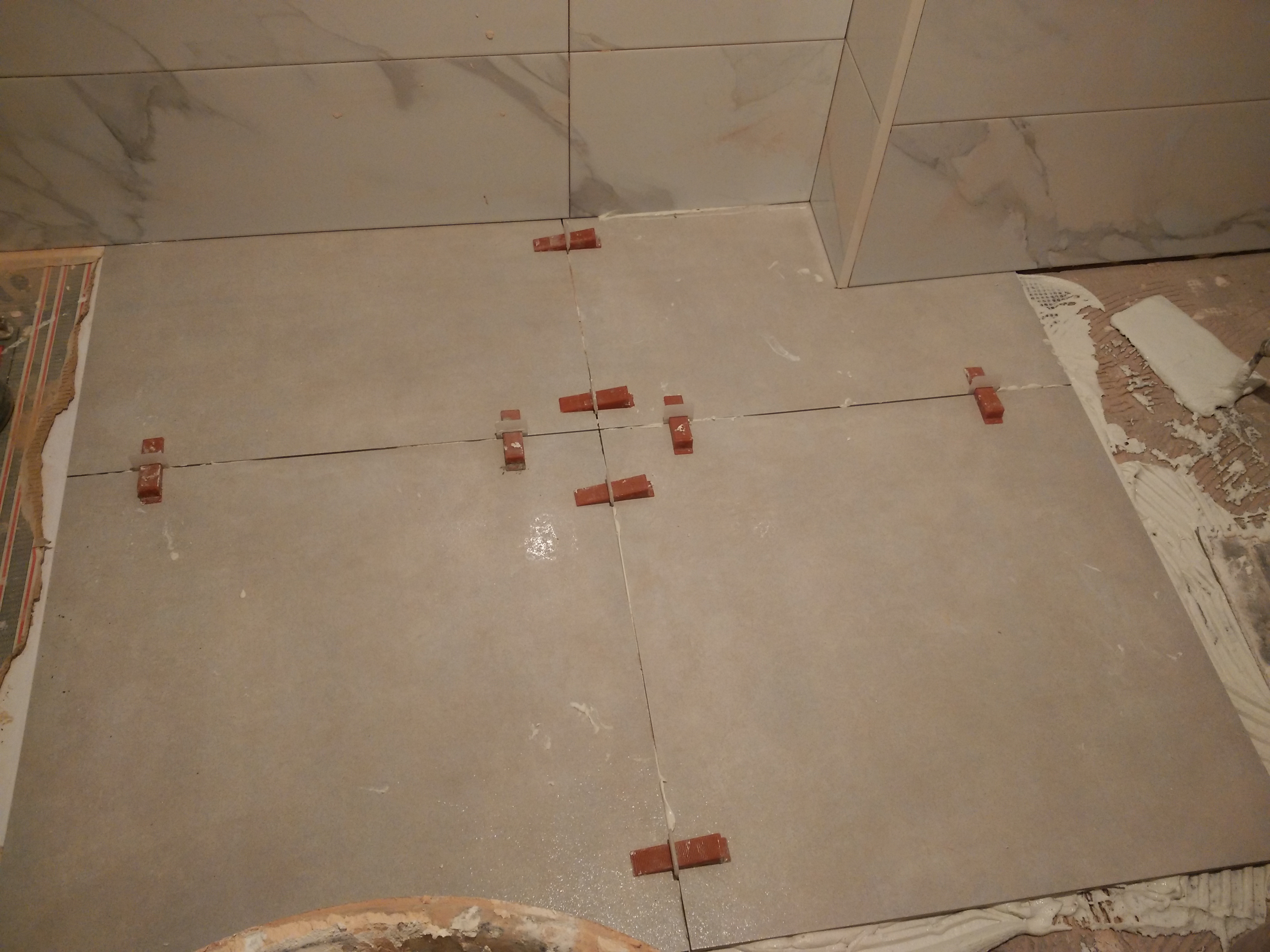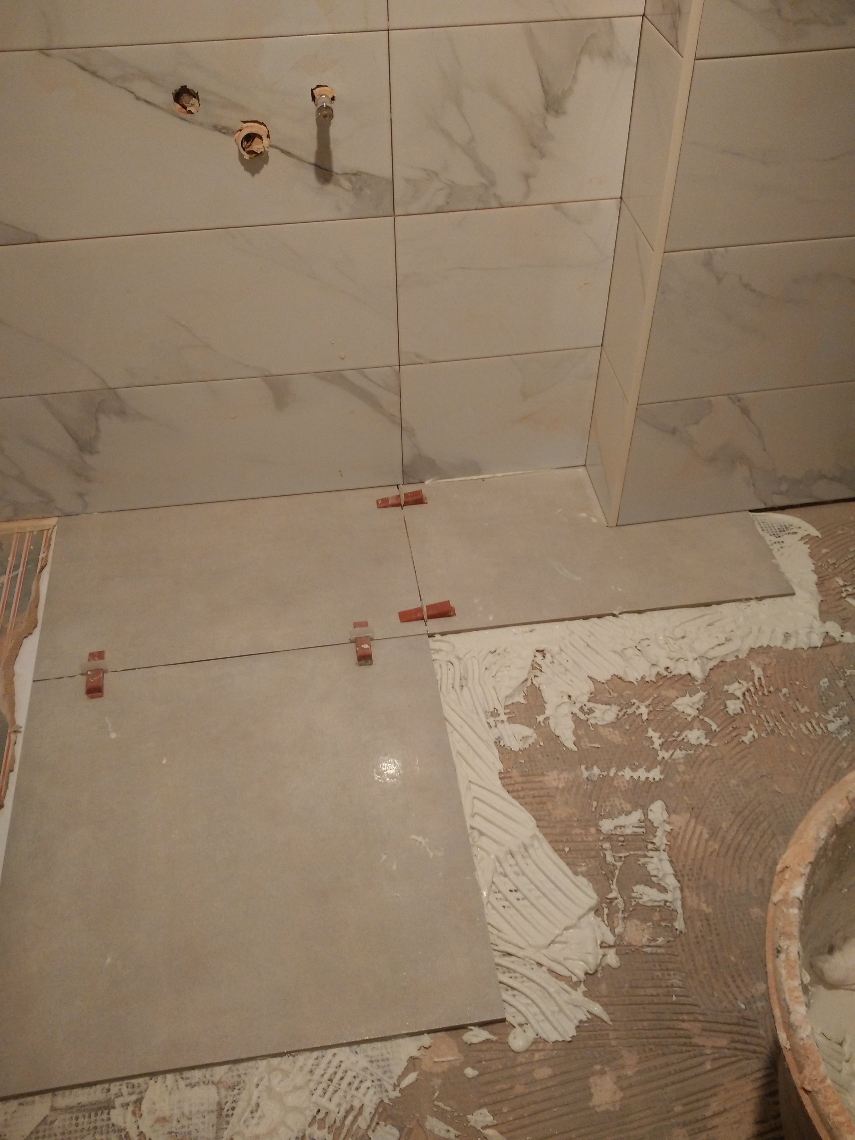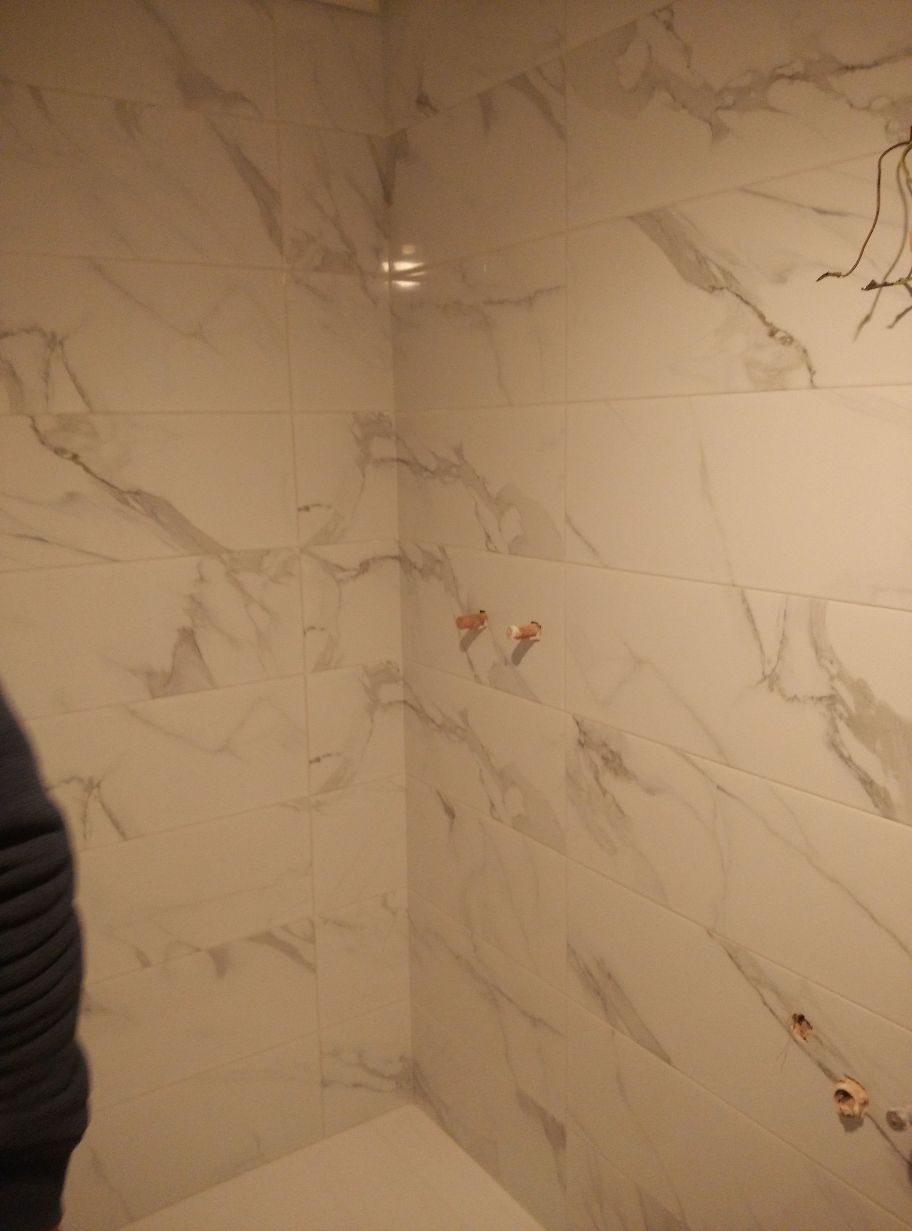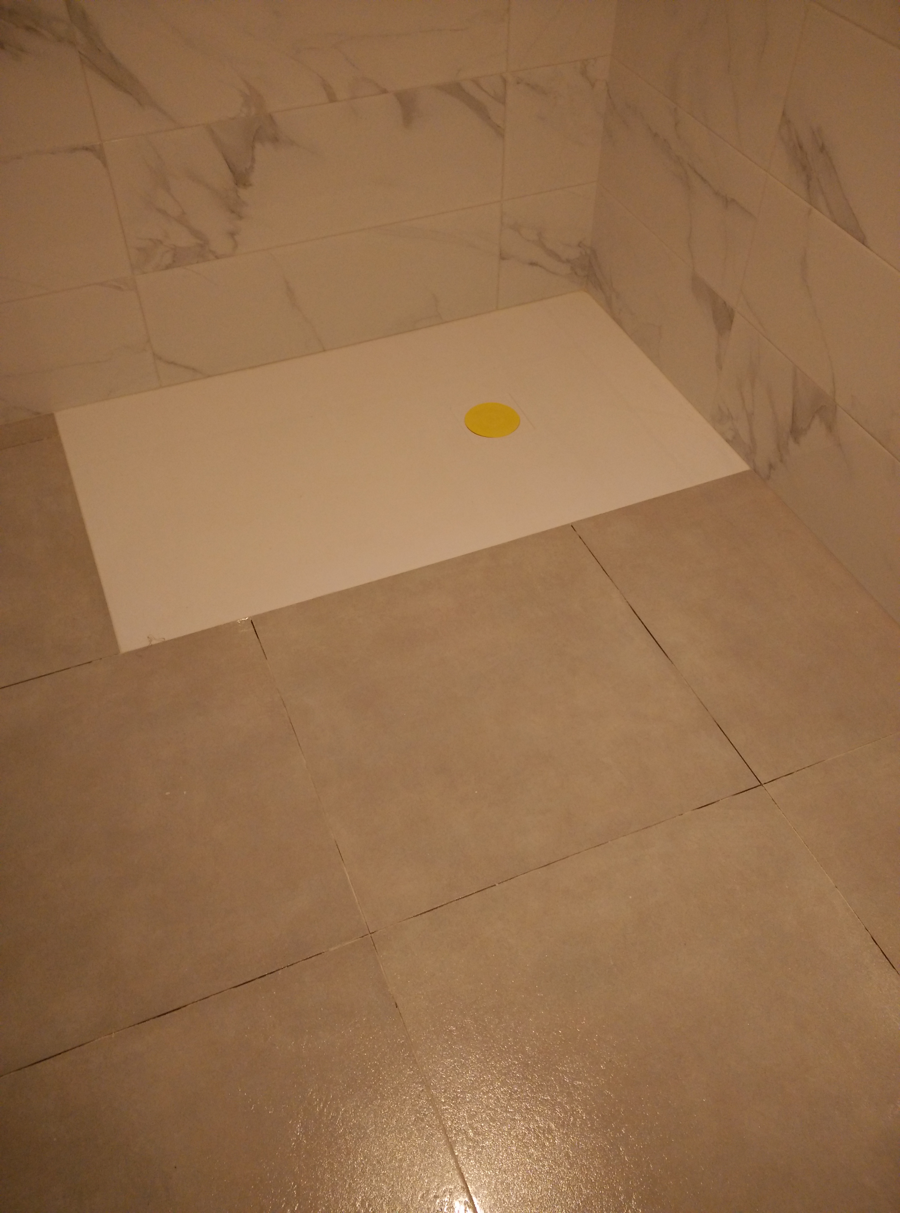 Después hay que revestir las paredes con azulejo marmoleado de 25x75cm. y el suelo con baldosa porcelánica de 50x50cm.