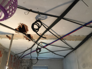 El nuevo techo de pladur lo vamos a aprovechar para hacer también nueva instalación eléctrica.