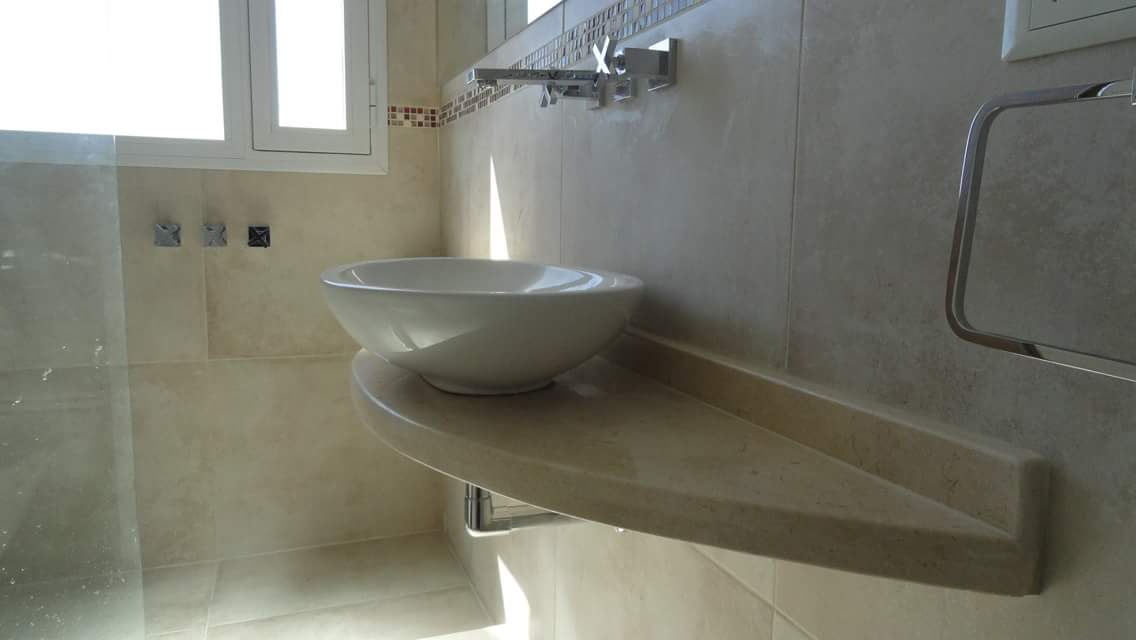 En este baño se trata de quitar la bañera y colocar un plato de ducha de obra. Cambiar toda la instalación de fontanería y electricidad, y cambiar también la ventana. De ser un baño incómodo y anticuado, convertirlo en moderno y práctico.