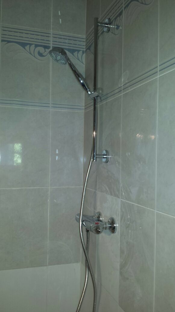 La grifería la vamos a cambiar por una termostática y a desplazarla al lado derecho, colocándola a la altura normal de una ducha, 1,10m.