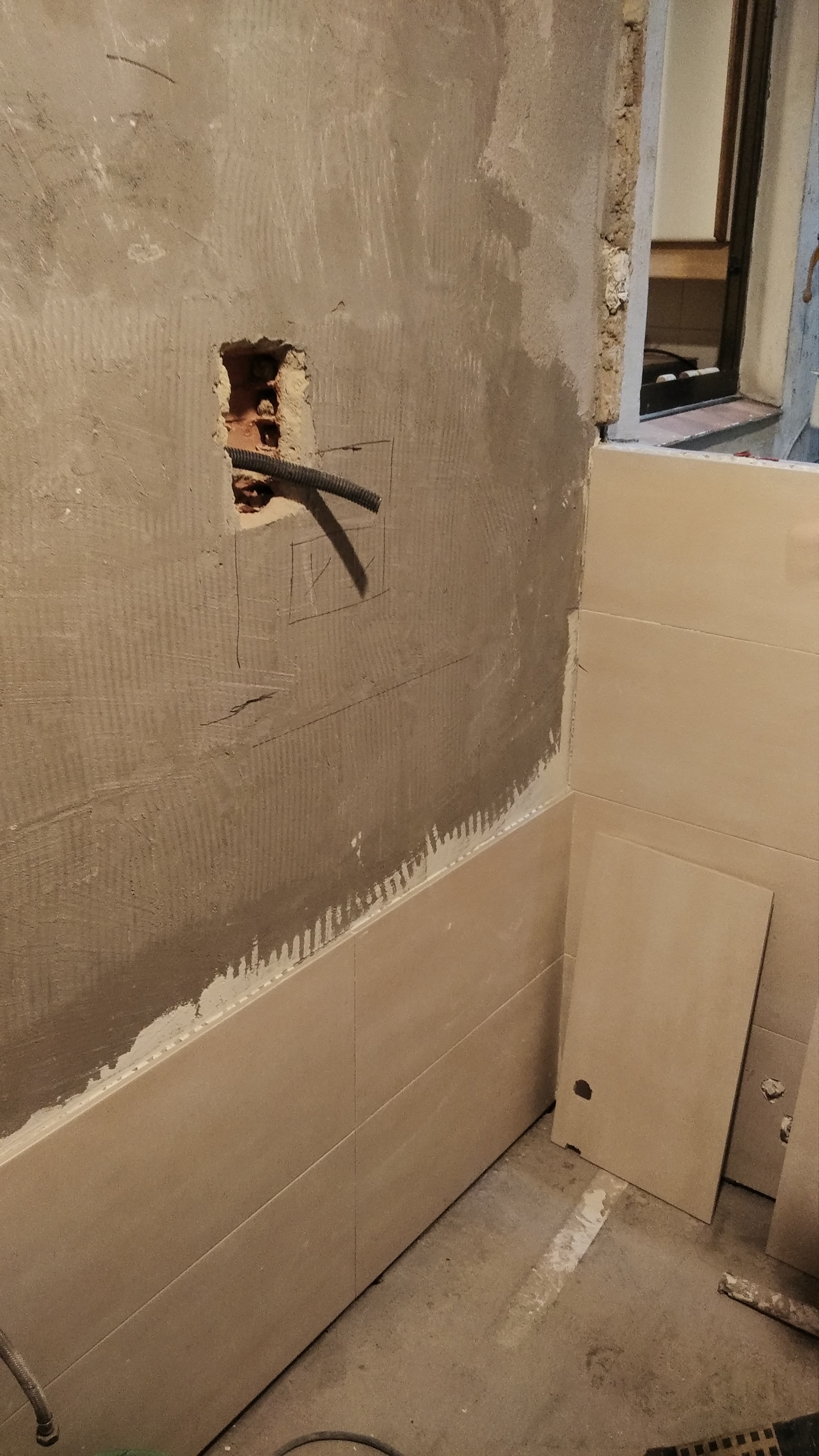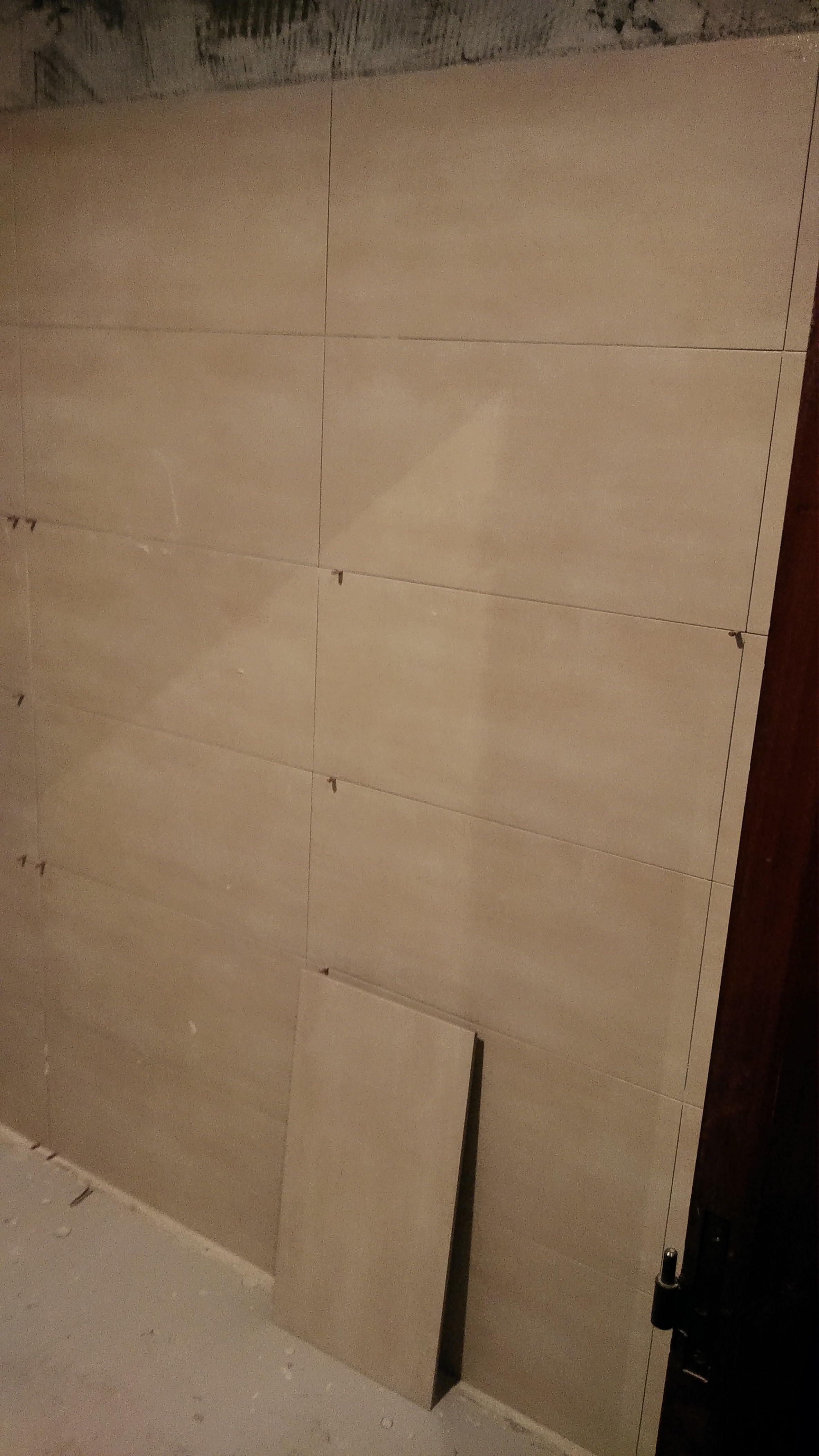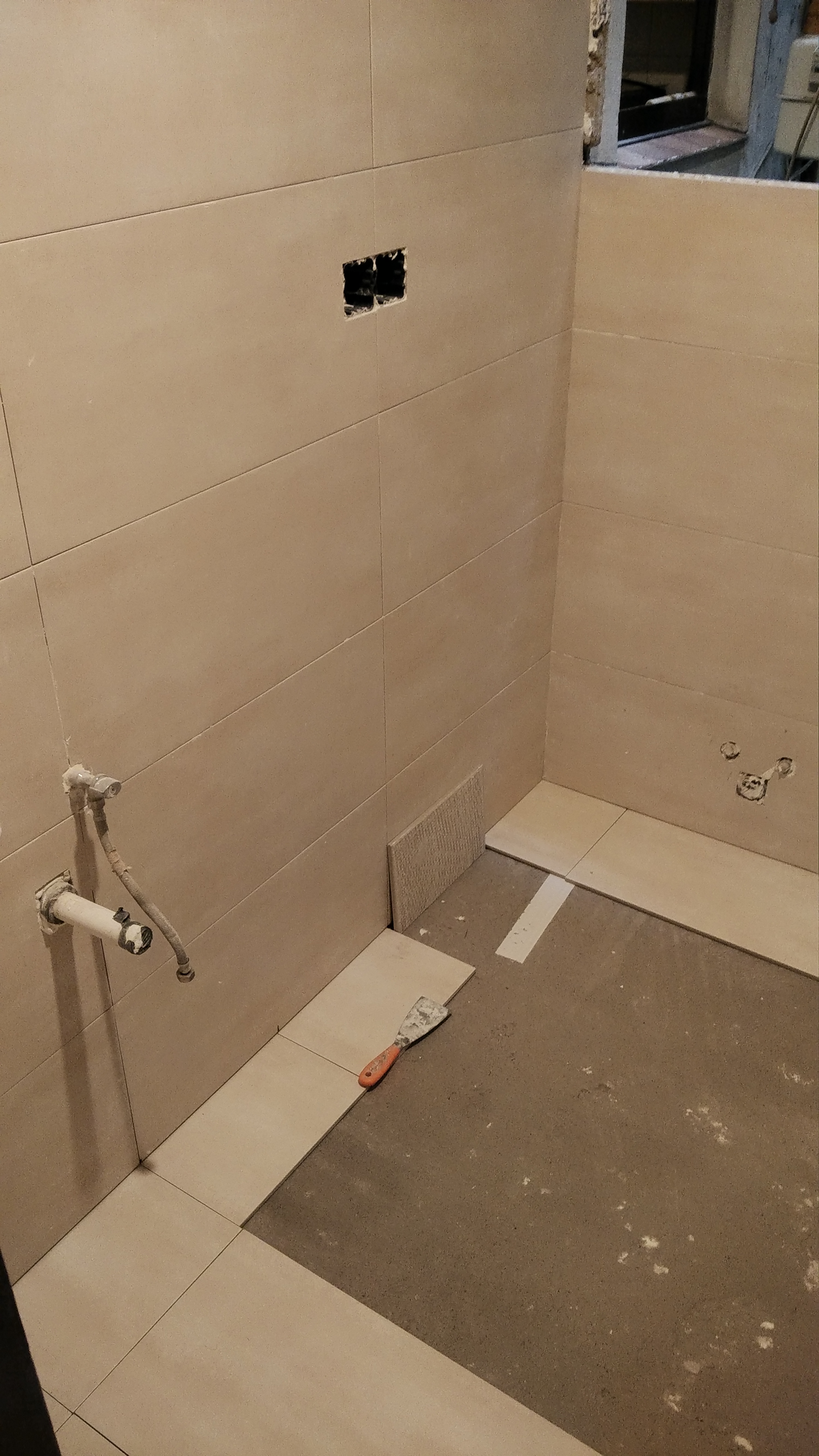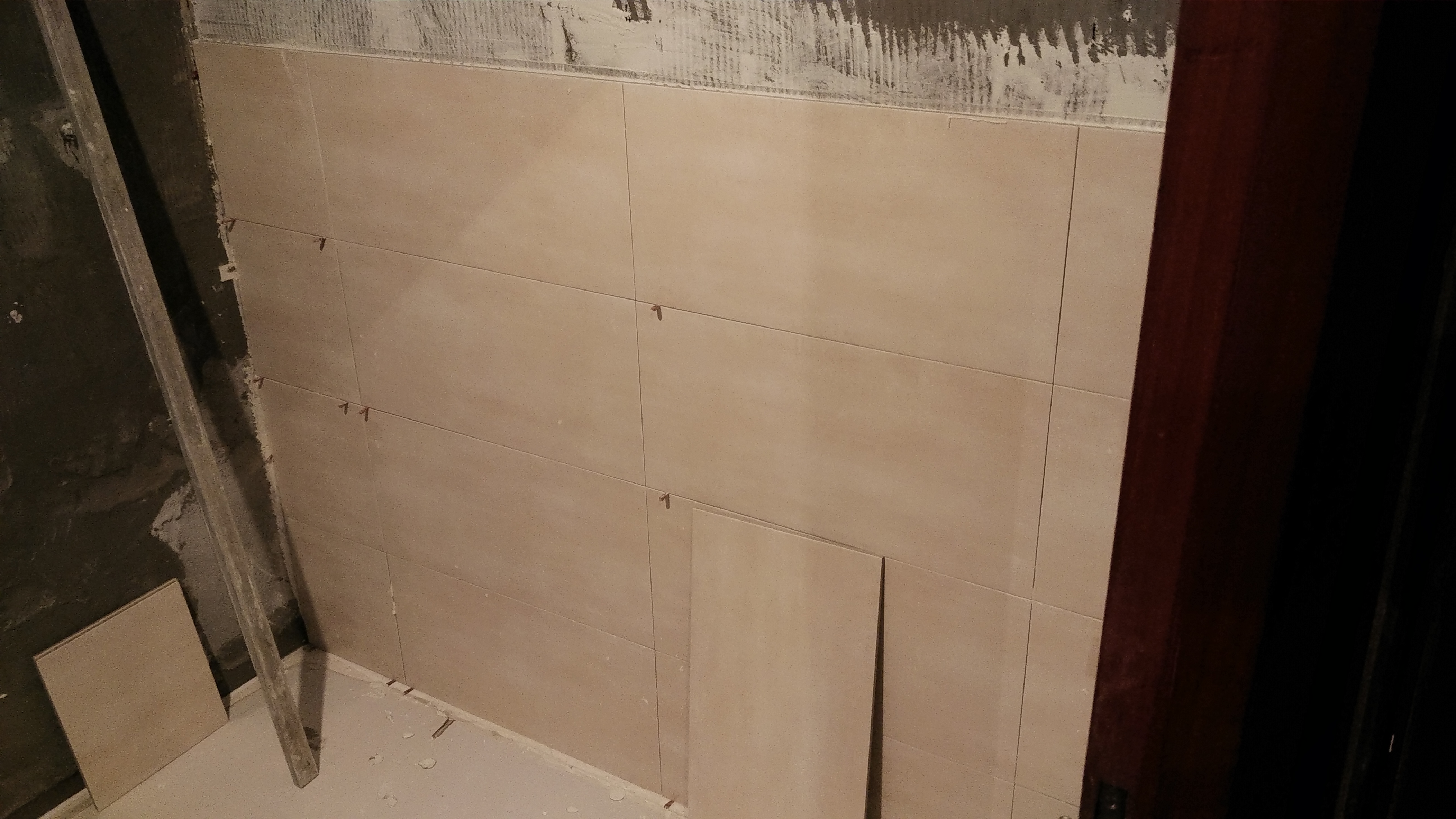 Luego después de cambiar la fontanería y electricidad, rasear las paredes y azulejar paredes y suelo con baldosa porcelánica 30×60.