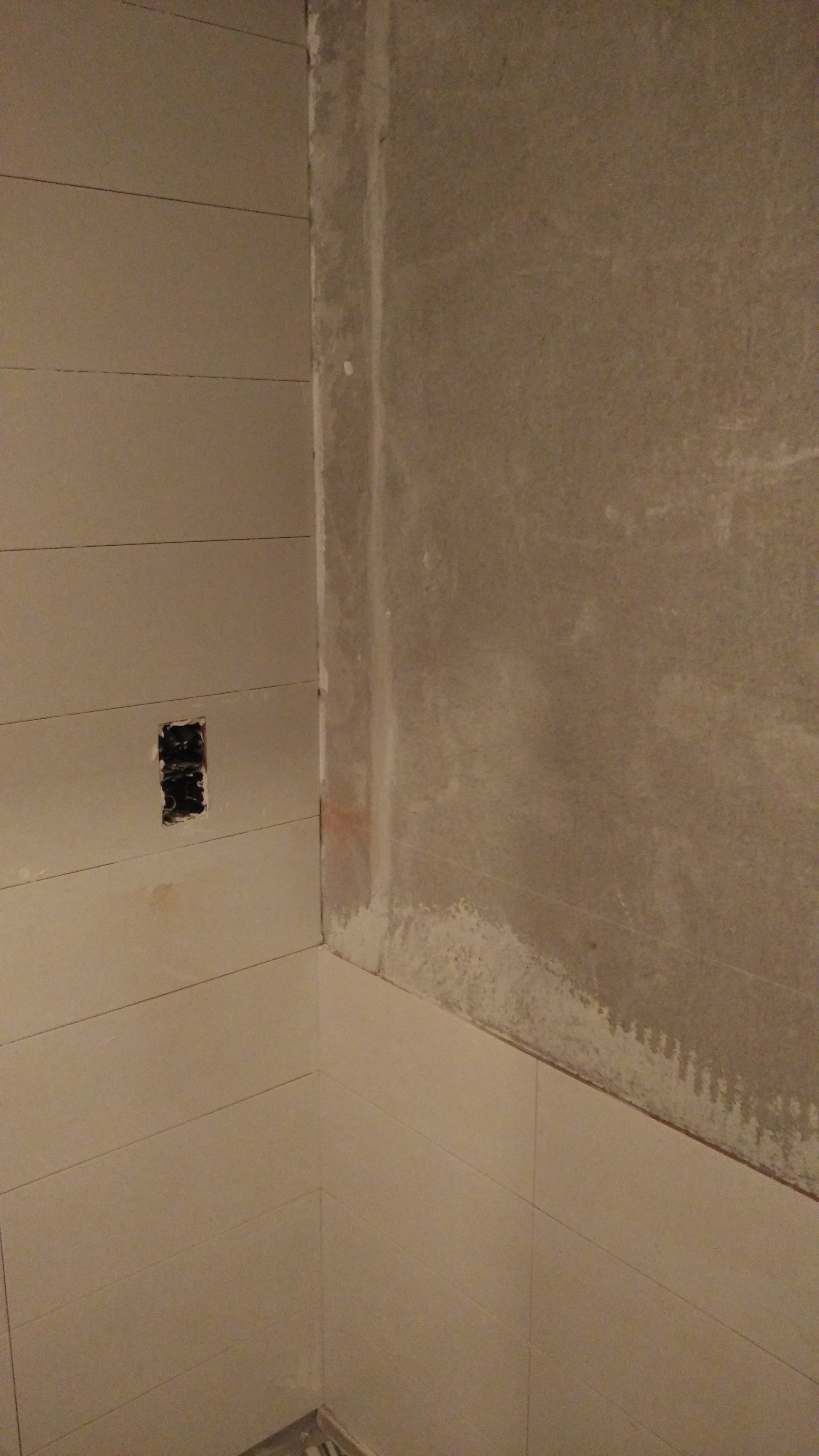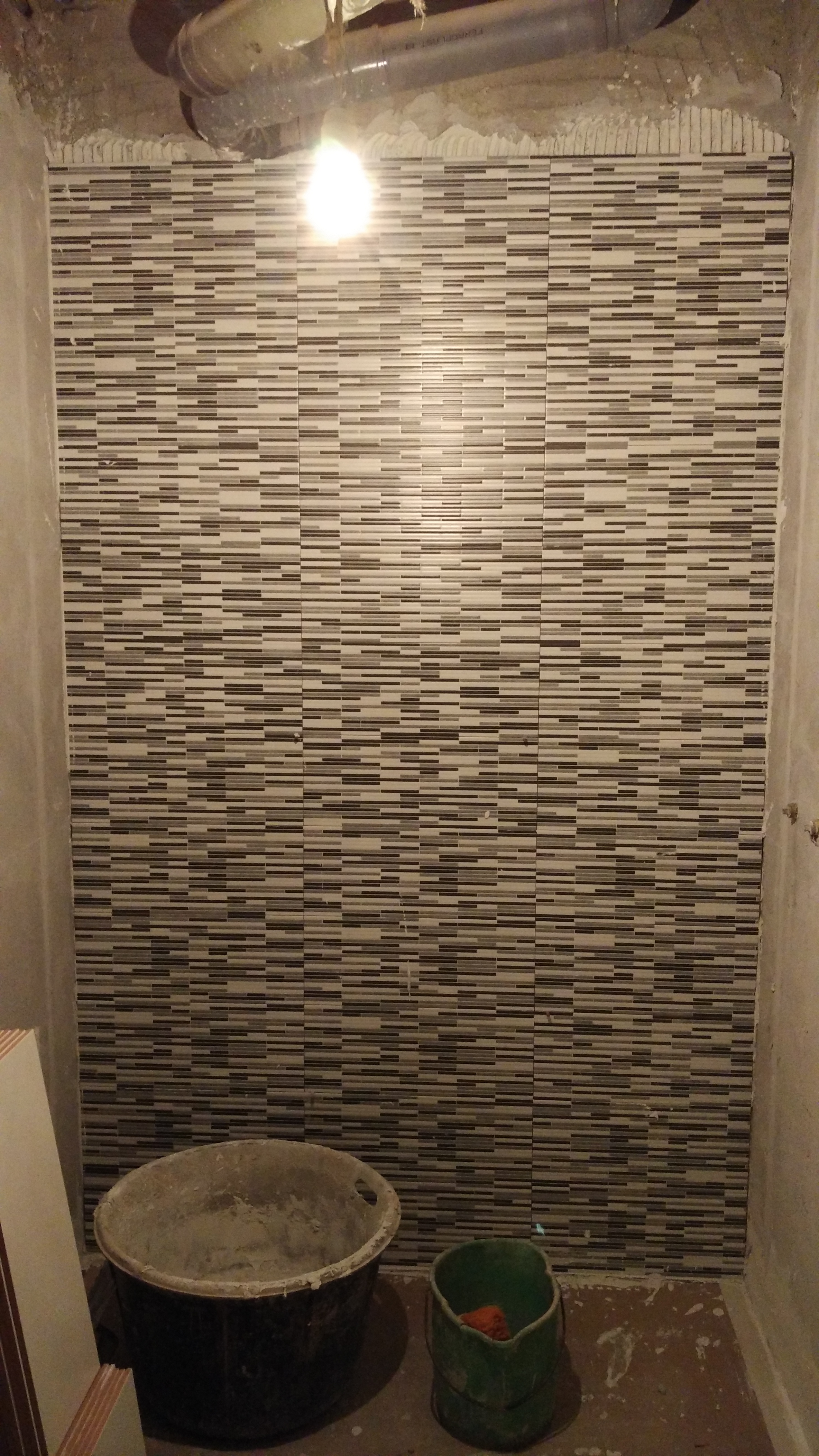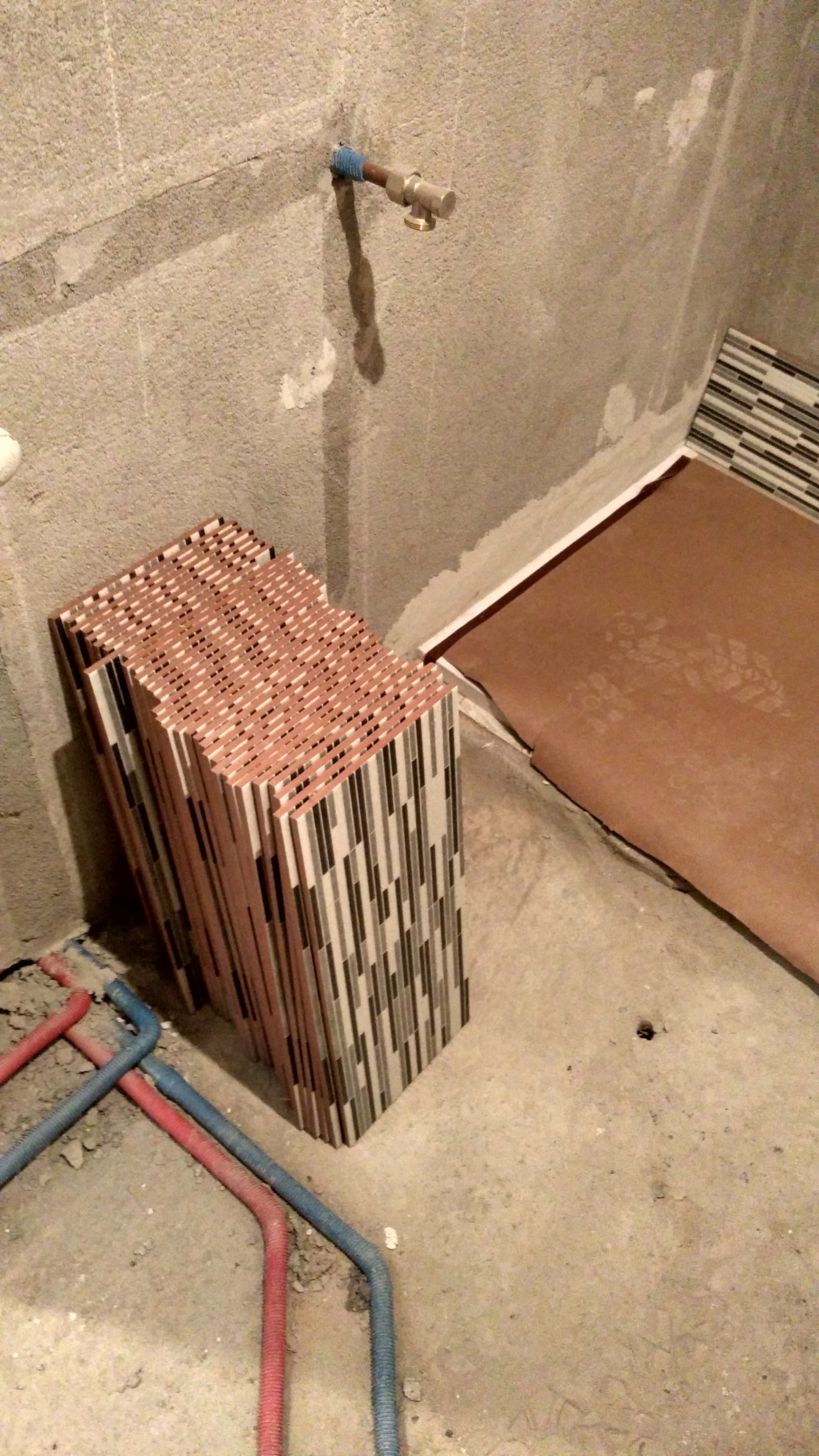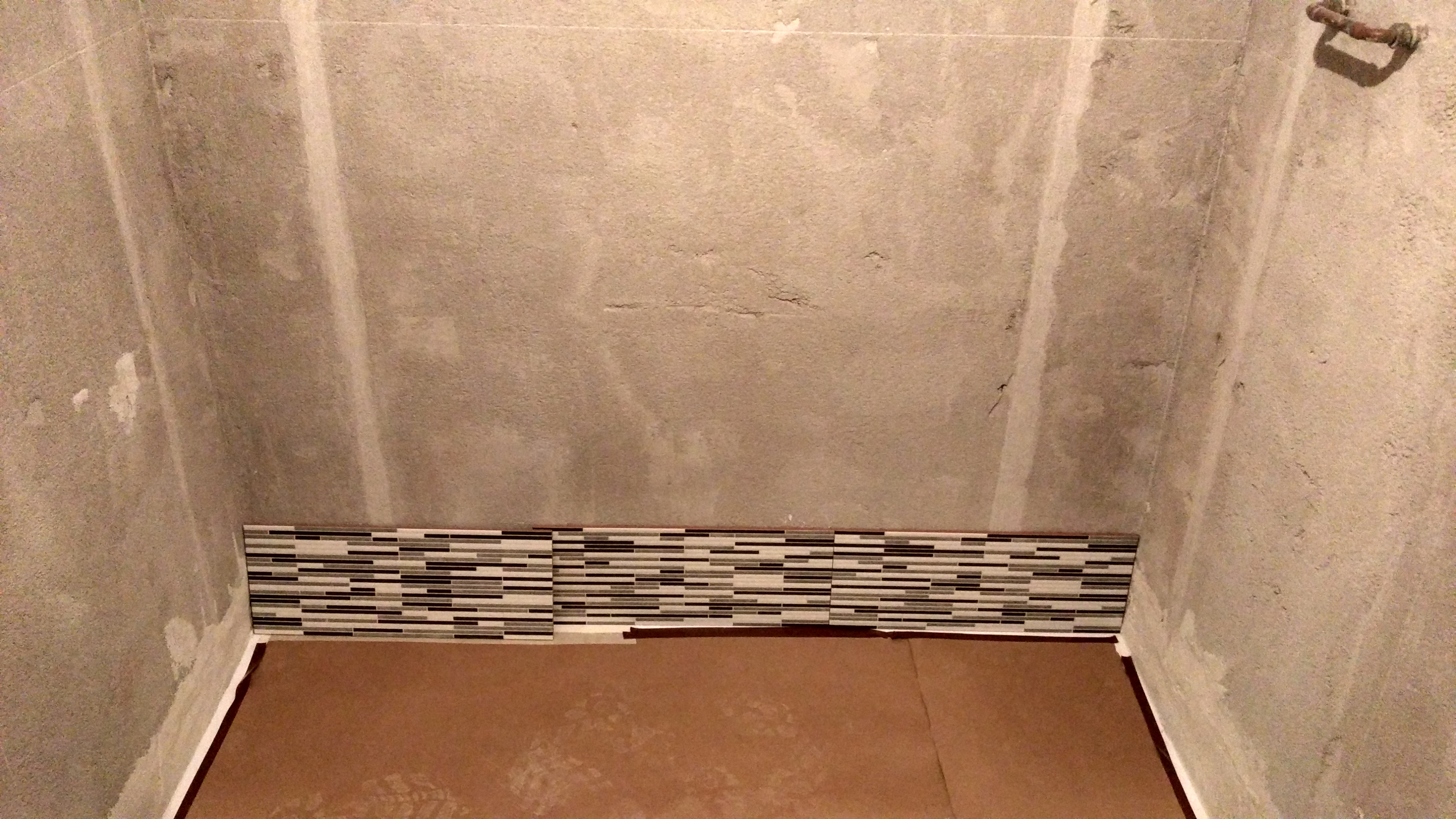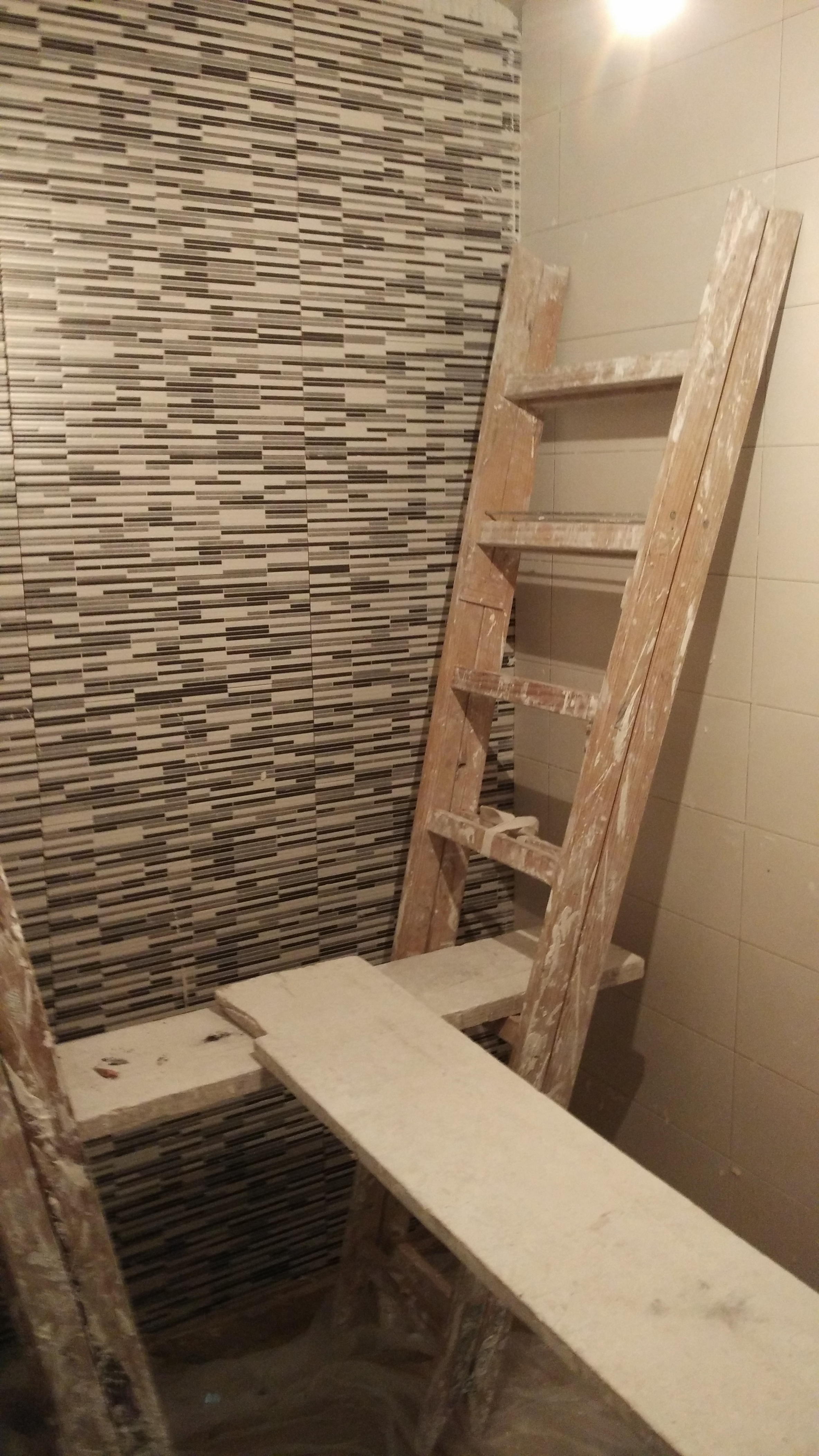 Luego, después de hacer la base, se coloca el plato de ducha de Silex blanco de 70 x 150cm. y se empieza a azulejar.