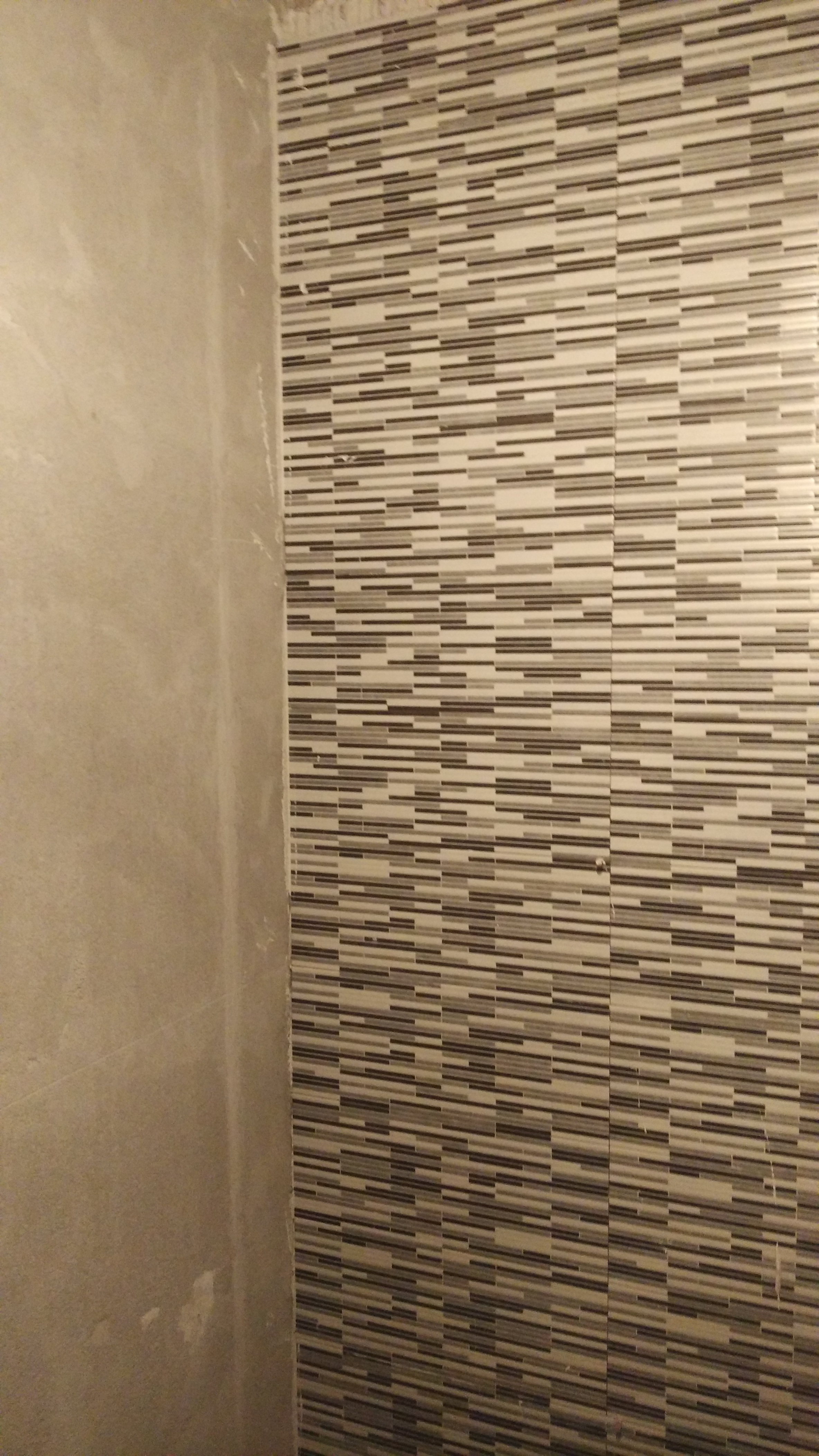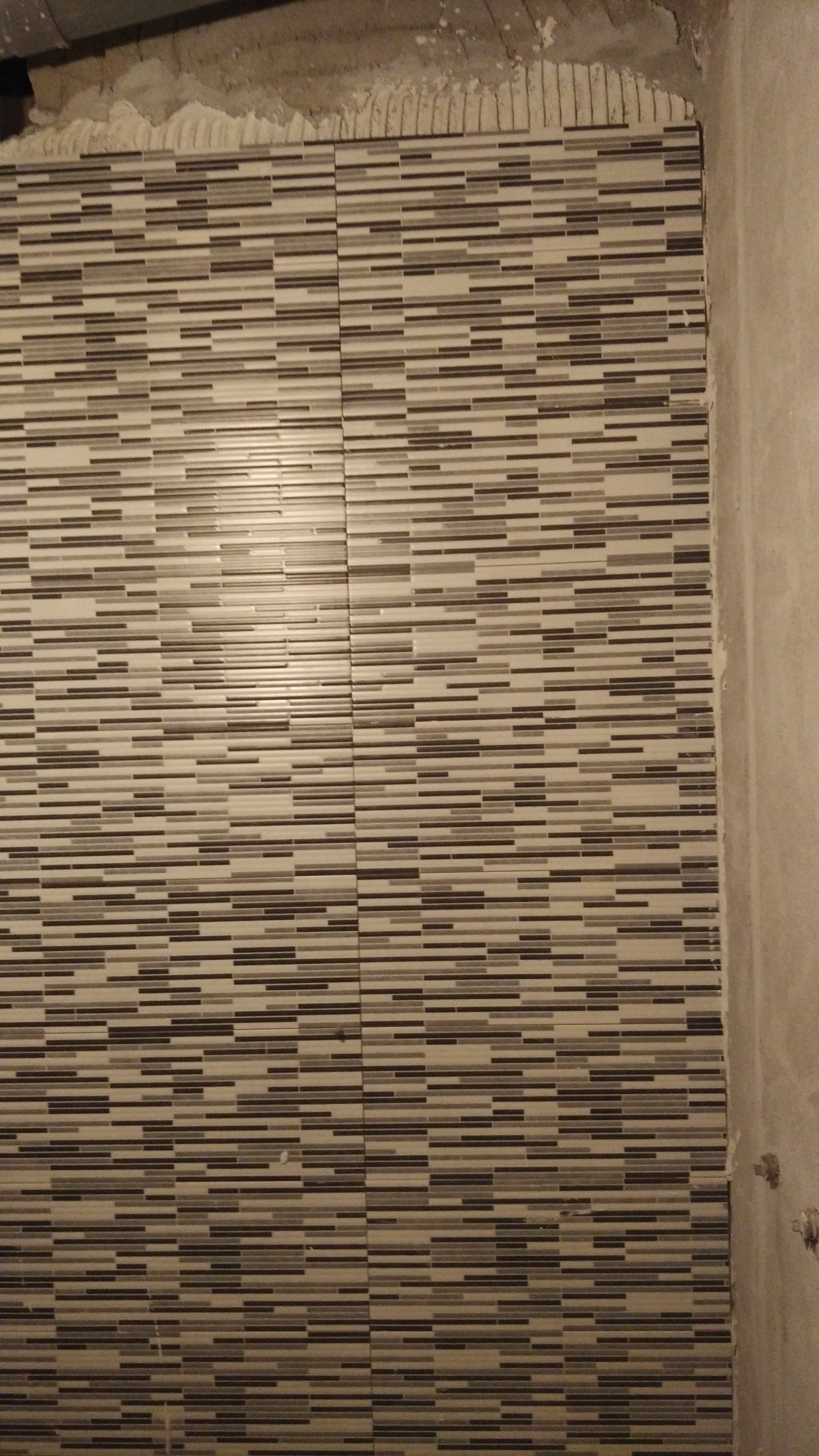 En la pared del fondo de la ducha se va a colocar azulejo con dibujo tipo mosaico, de 20x50cm., y el resto del baño con azulejo color crema claro también de 20x50cm.