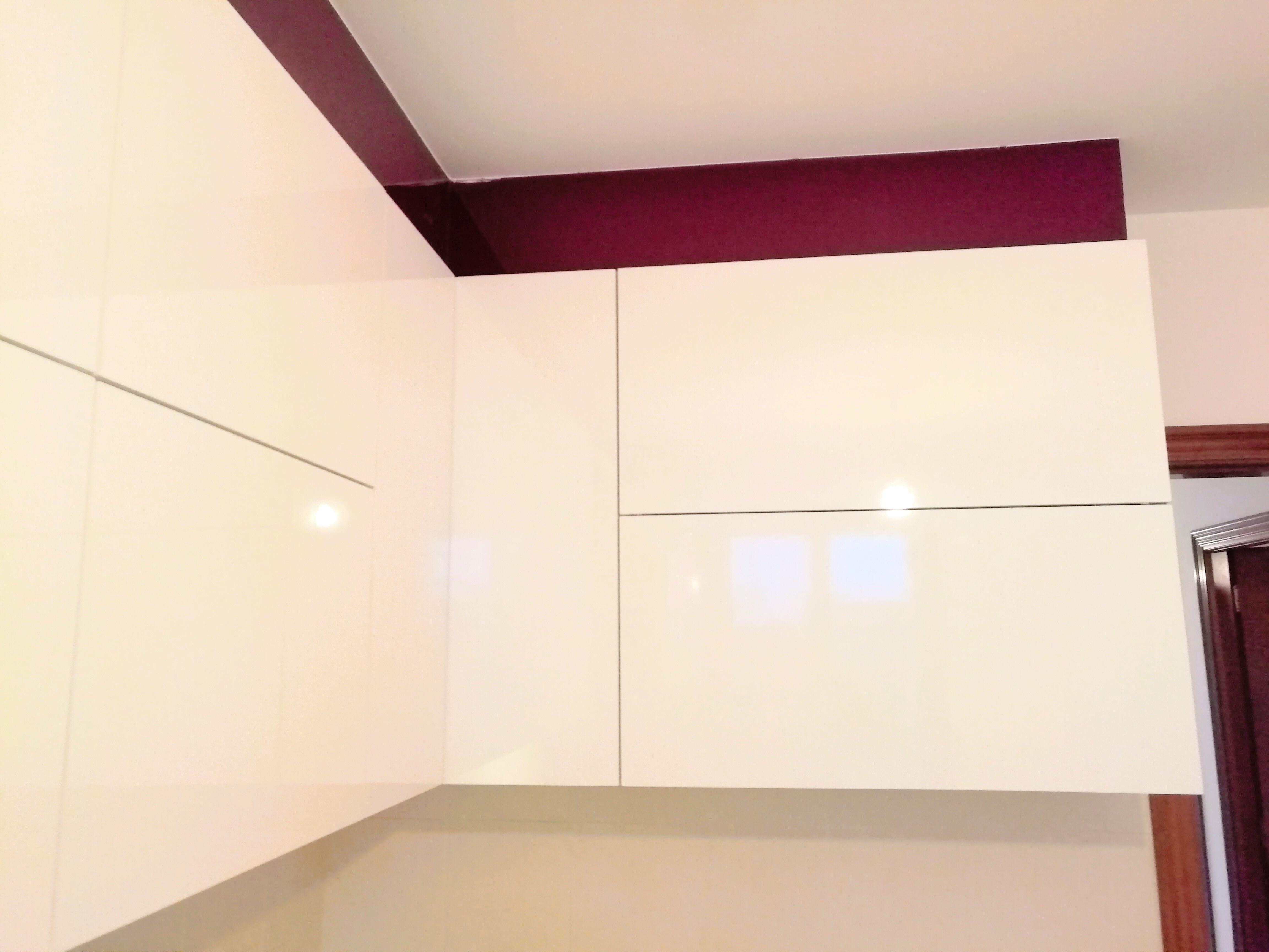 Y ya tenemos la cocina terminada, los muebles de color crema y berenjena, el silestone crema también, y las puertas sin tiradores.