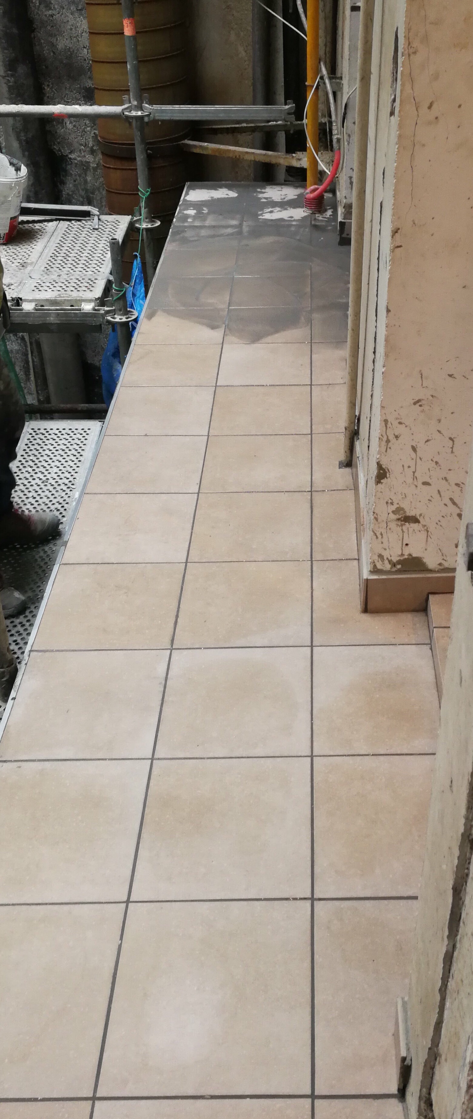 Se ha dado tratamiento impermeabilizante antes de alicatar con baldosa porcelánica de 30 x 30.