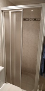Dutxa manpara jarri berria/Mampara de ducha recién instalada.