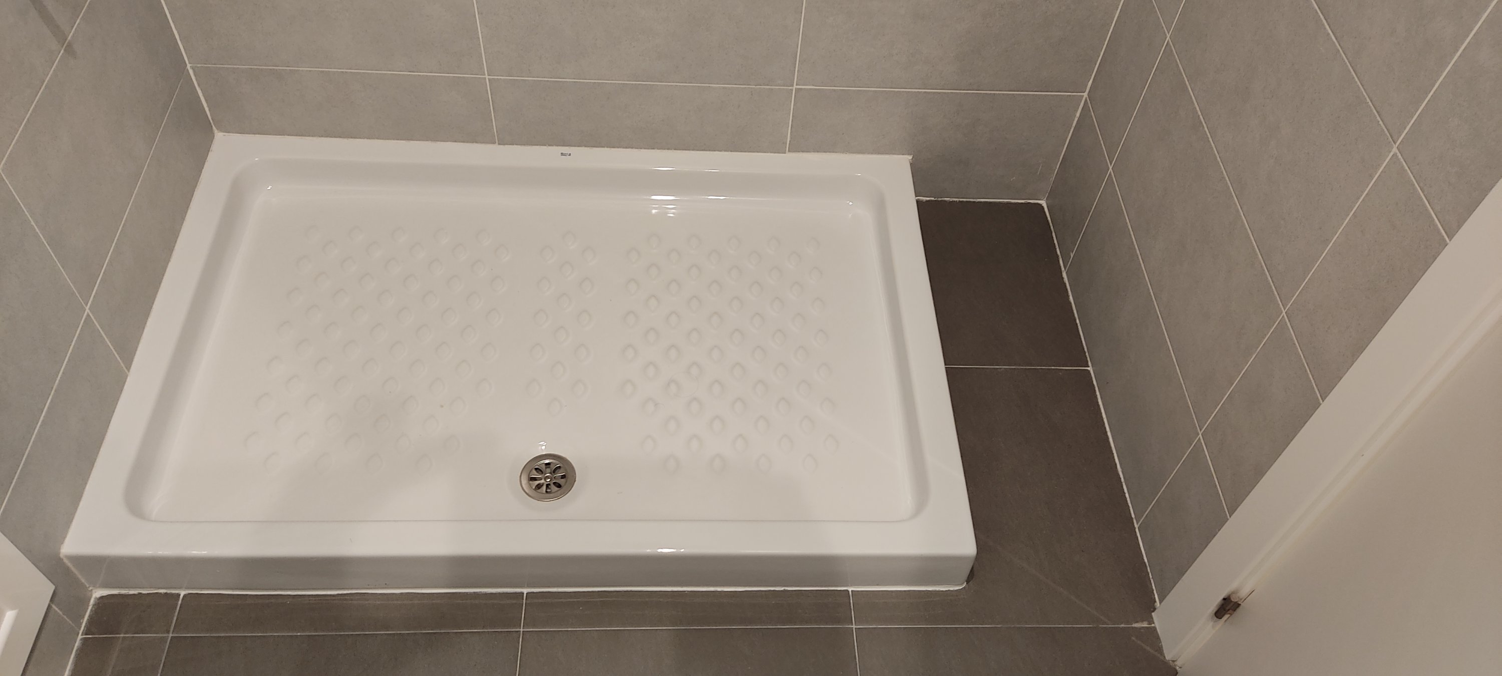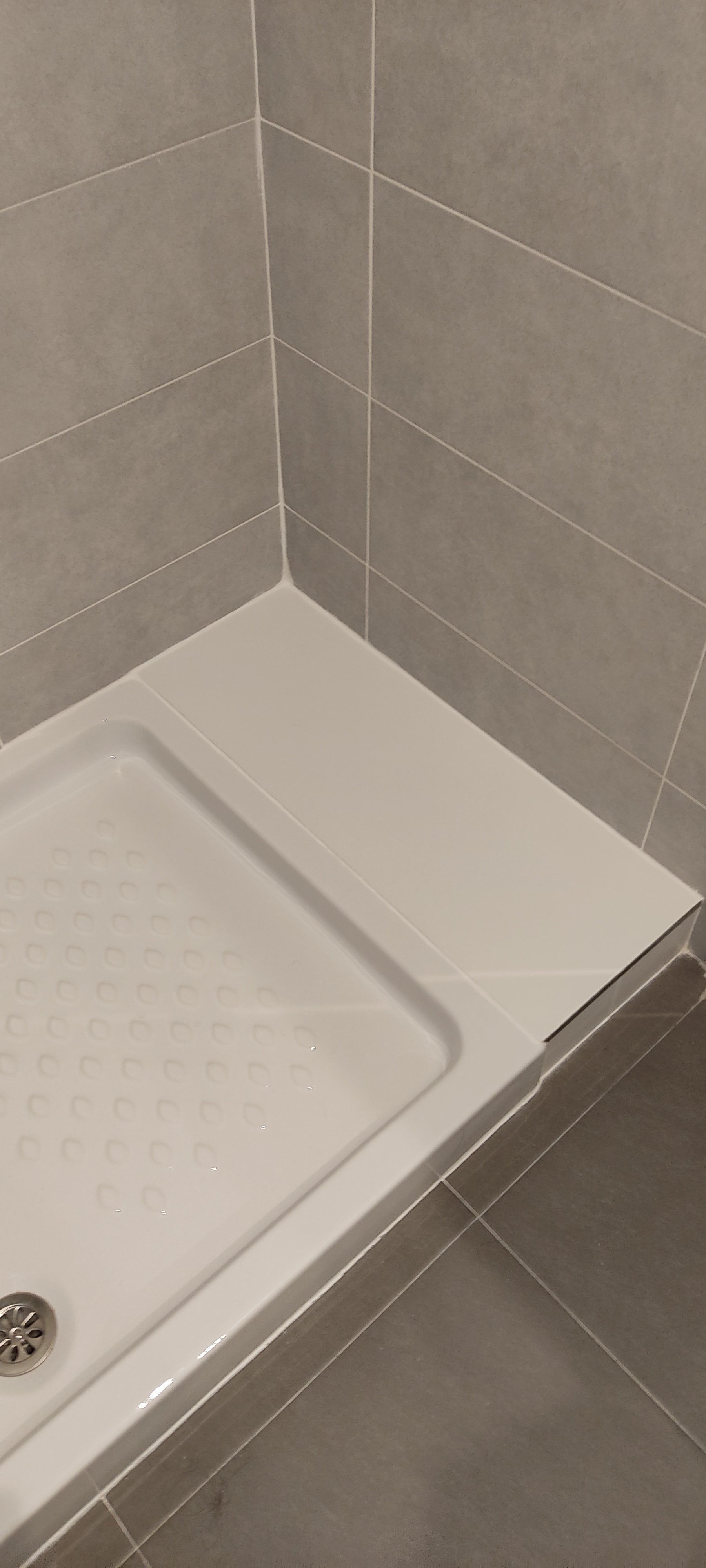 Trabajo realizado esta semana, agrandar un plato de ducha para poder instalar una mampara frontal.