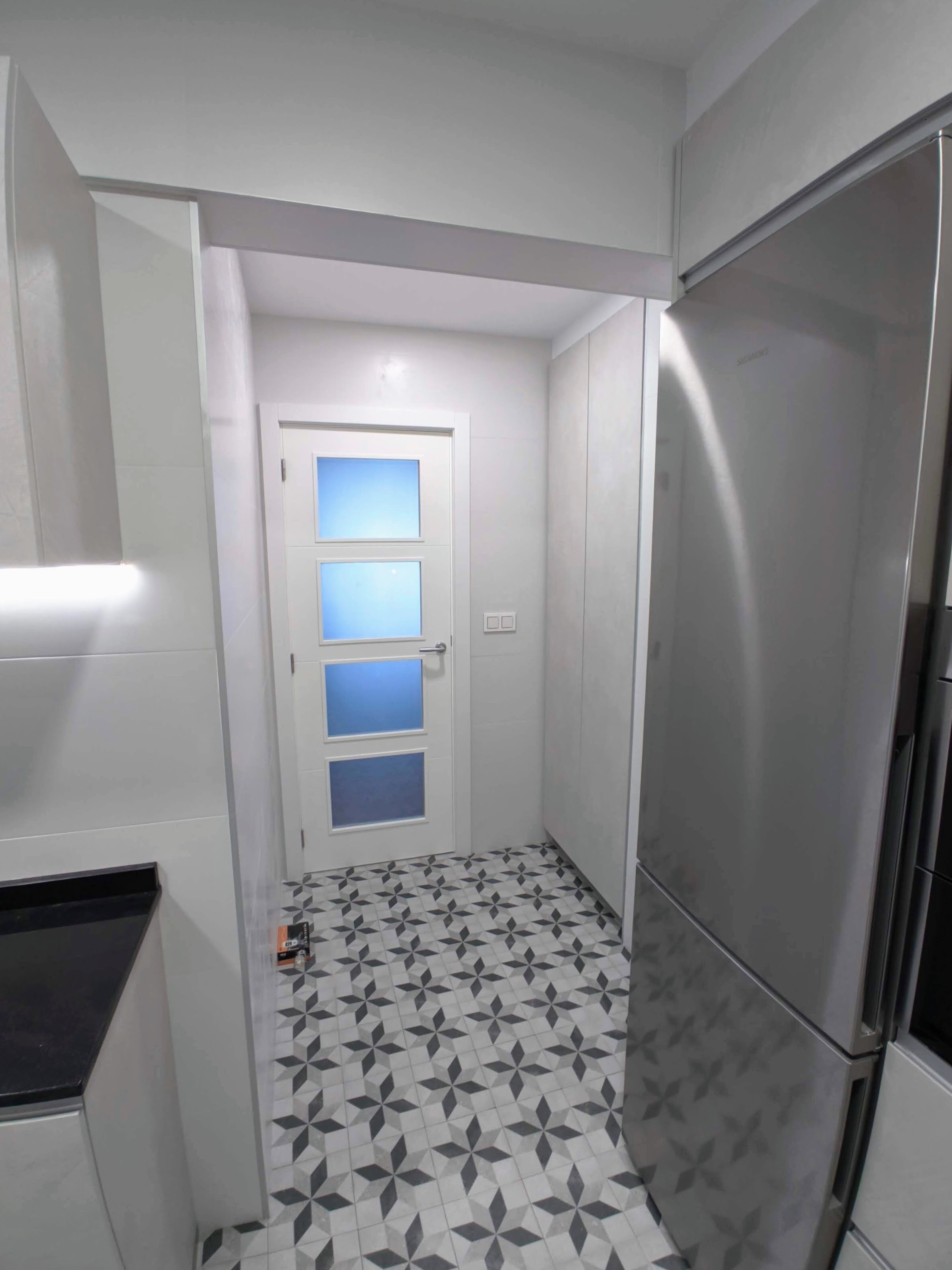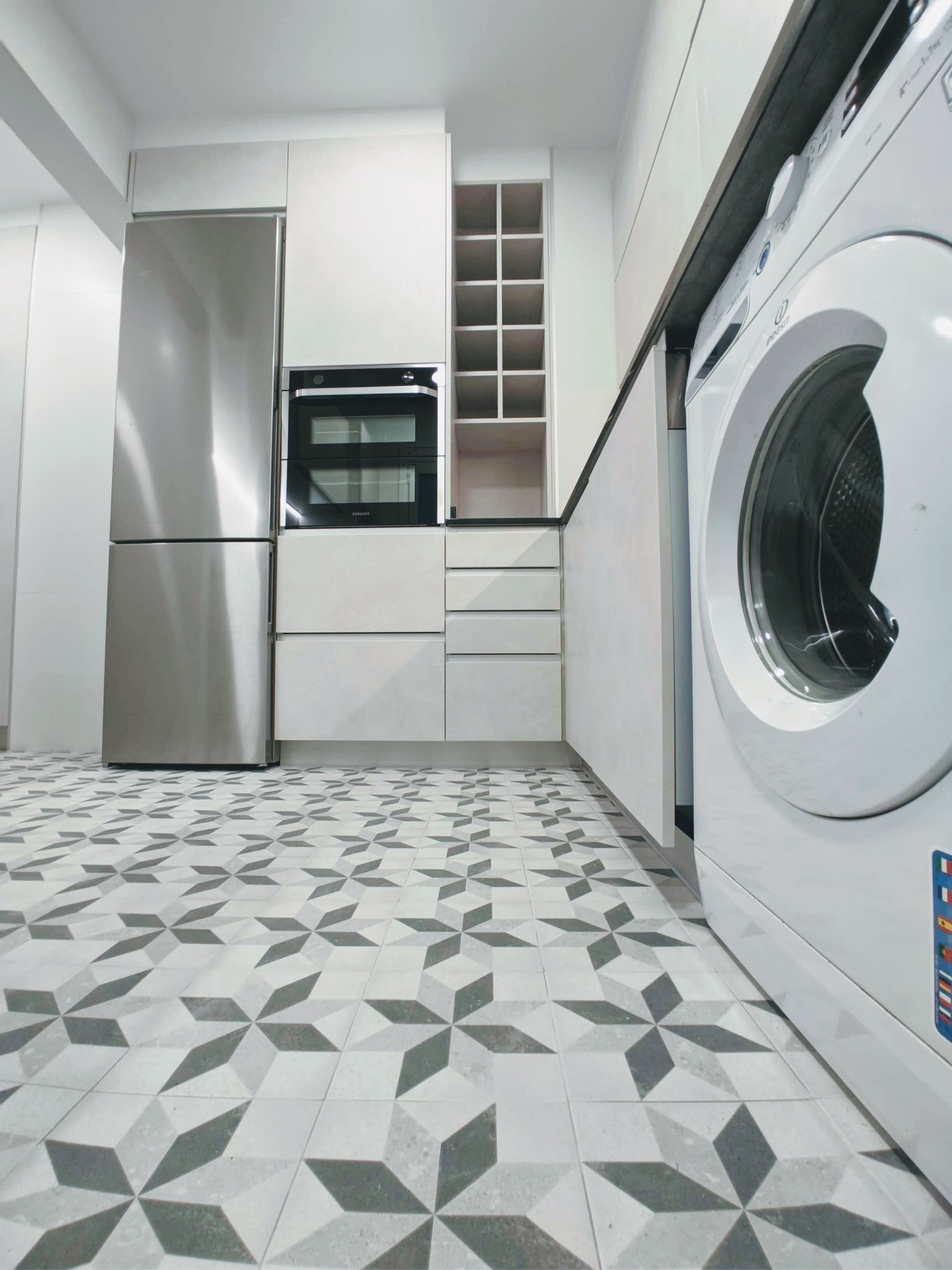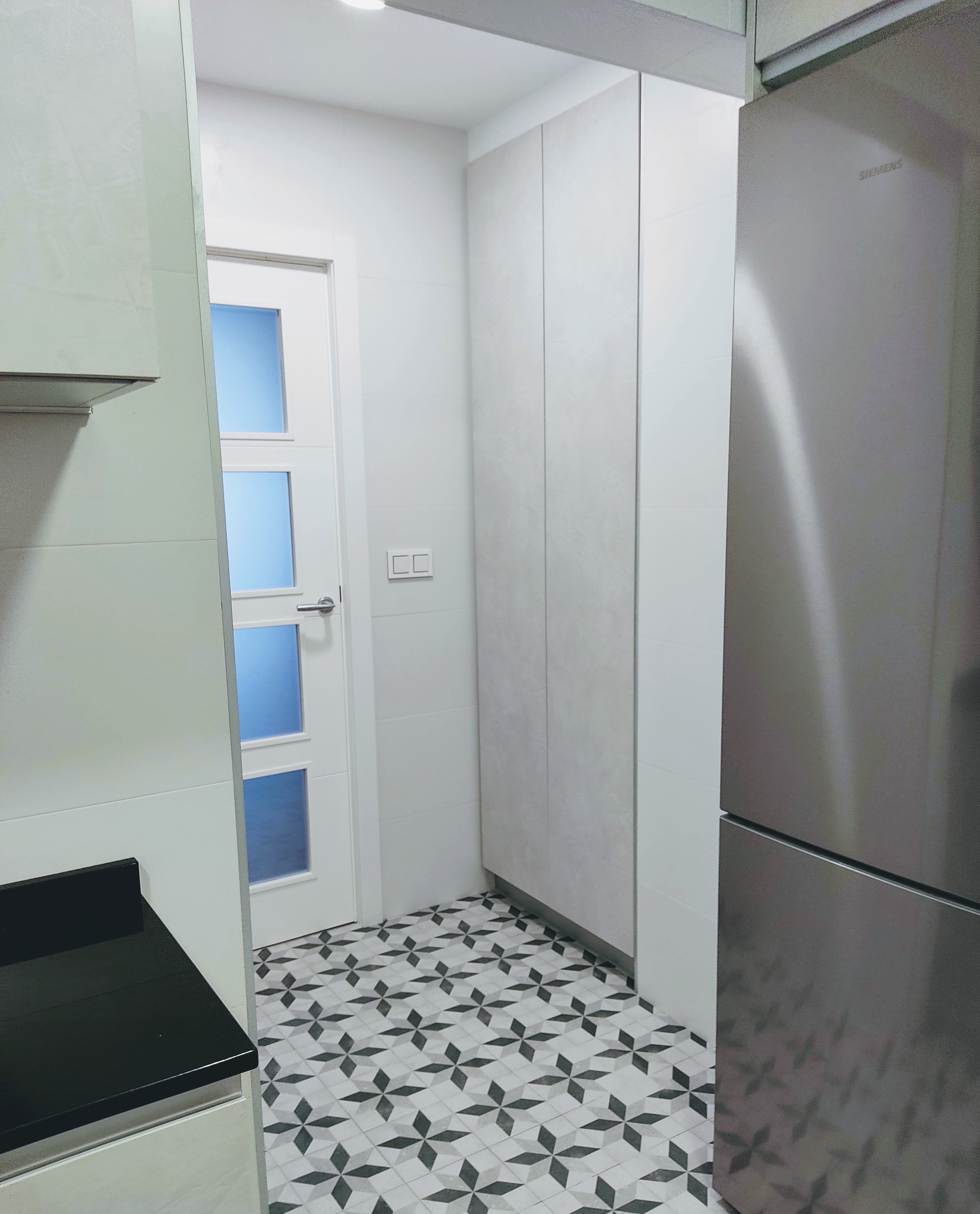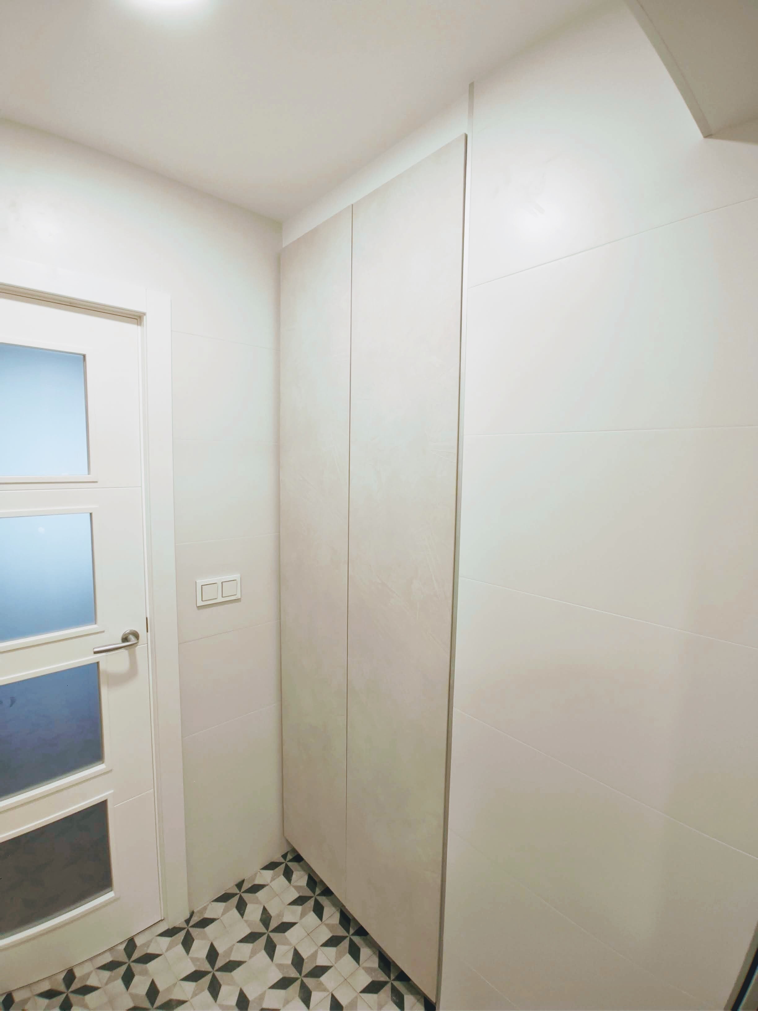 Los azulejos son de 33×90 rectificados, y las baldosas 20×20.