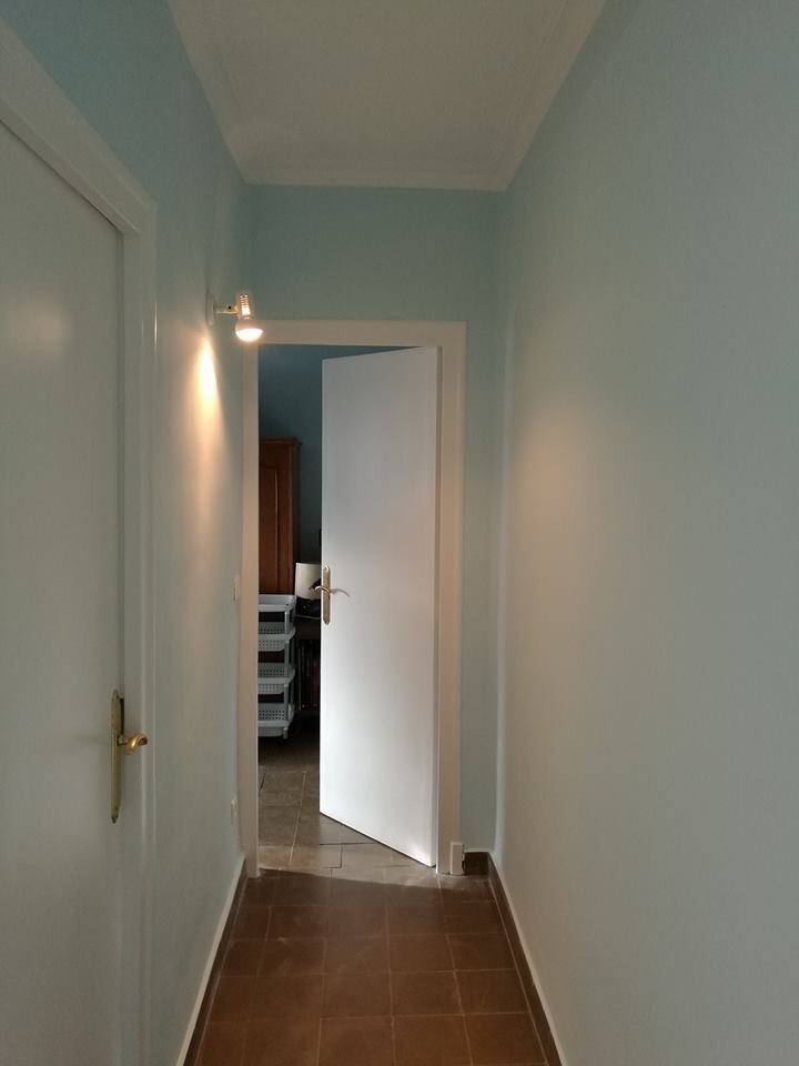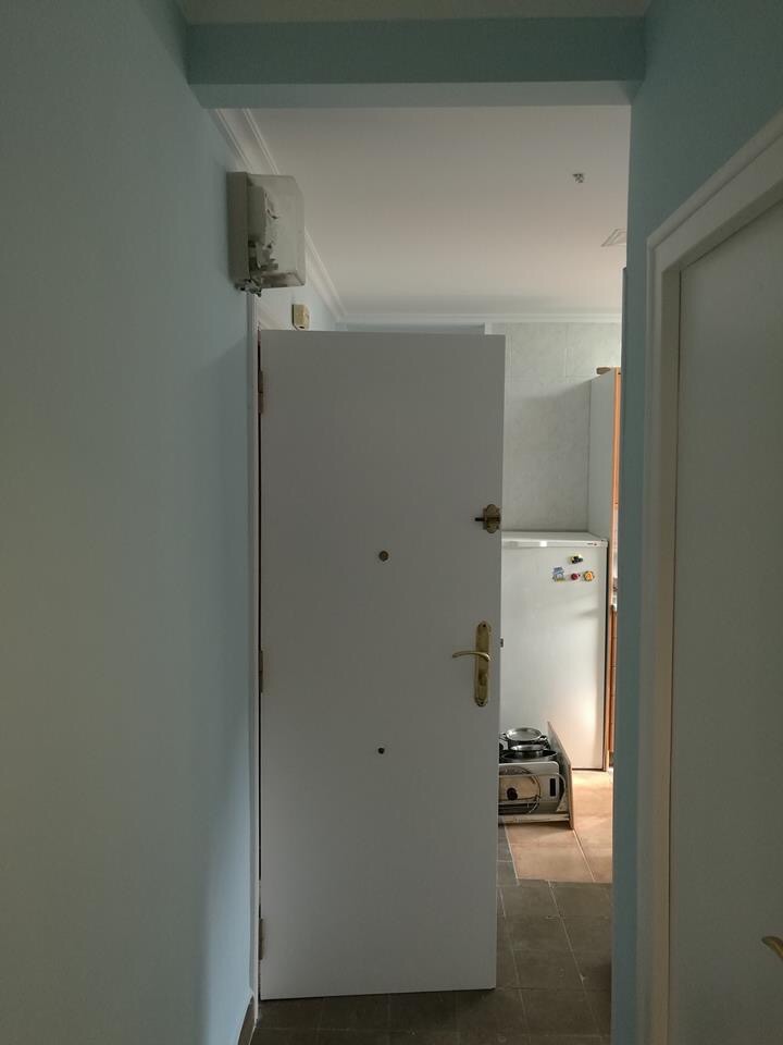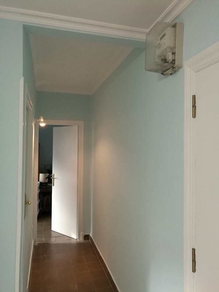 Las paredes estaban en muy mal estado, y hay mucho trabajo para arreglarlas y dejarlas perfectas antes de pintar. El próximo trabajo será cambiar el suelo original de terrazo también en mal estado pero será más adelante.