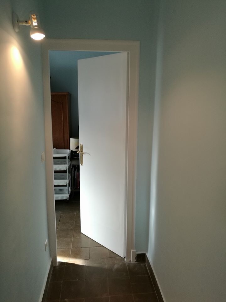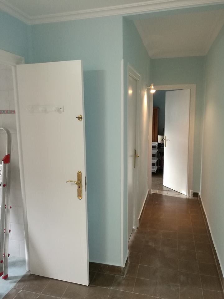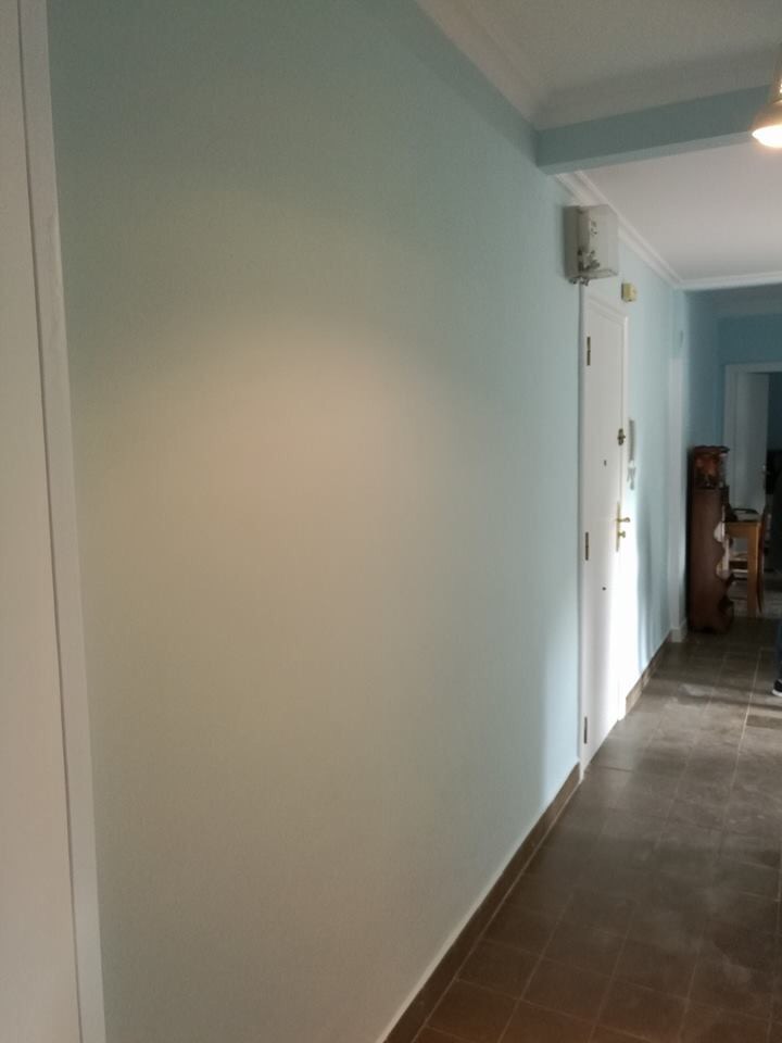 Las paredes estaban en muy mal estado, y hay mucho trabajo para arreglarlas y dejarlas perfectas antes de pintar. El próximo trabajo será cambiar el suelo original de terrazo también en mal estado pero será más adelante.
