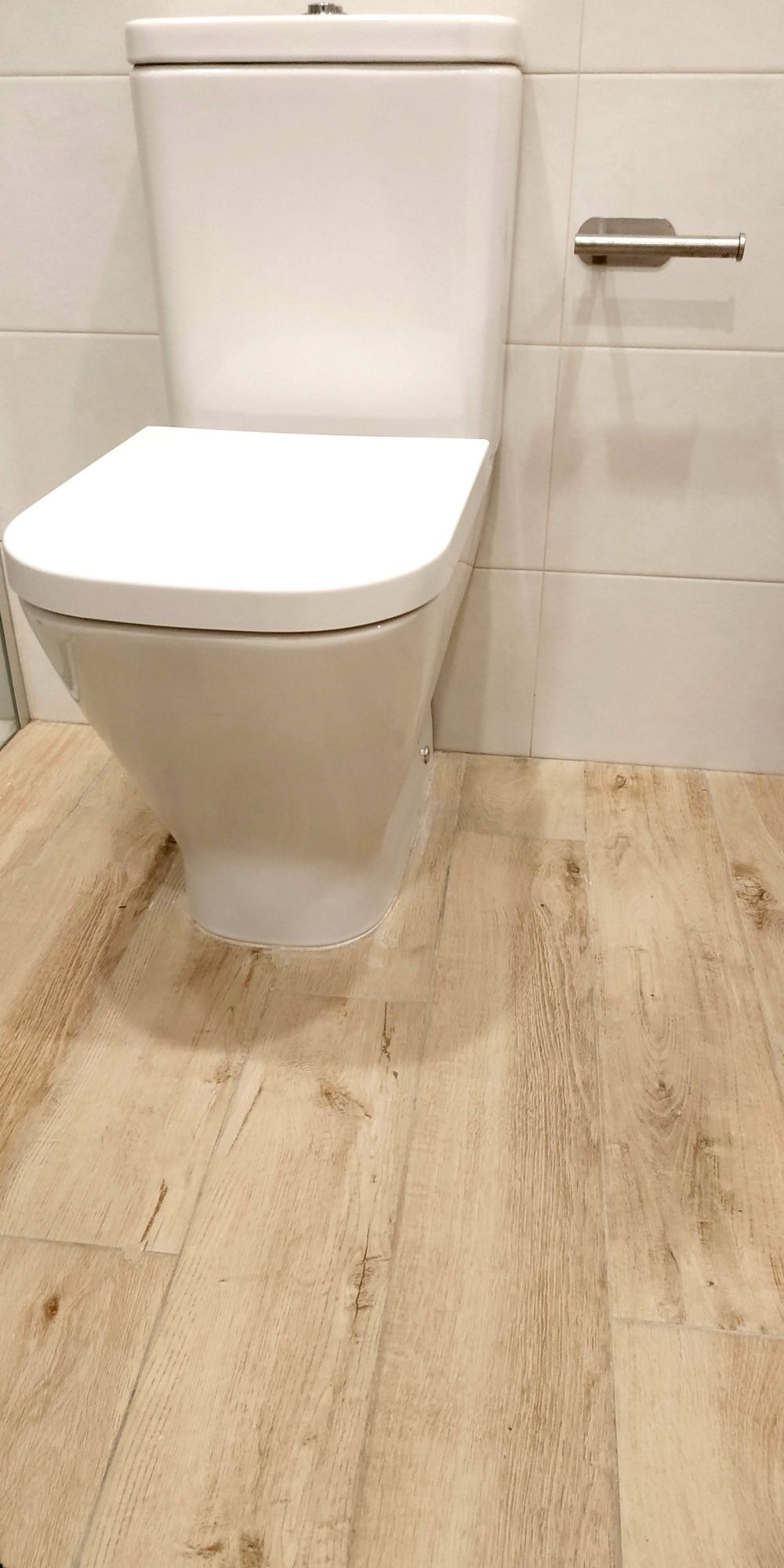 Cuando tengamos todo el baño azulejado, tendremos que rejuntear, o rellenar las juntas entre los azulejos con el color que hayan elegido los clientes.